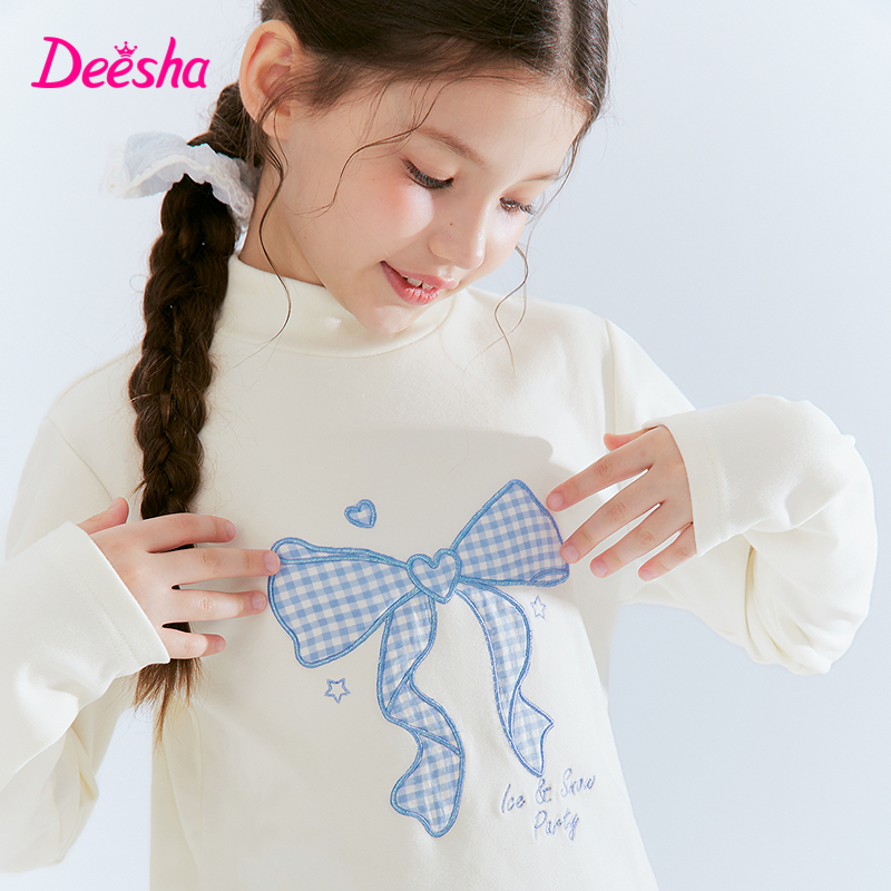 笛莎童装女童半高领打底衫秋冬季新款儿童中大童长袖T恤保暖白色