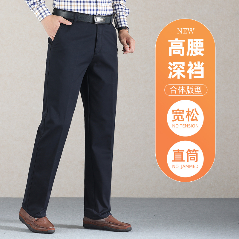 中年爸爸裤子男士纯棉休闲裤春秋厚款中老年男裤高腰深裆夏季薄款