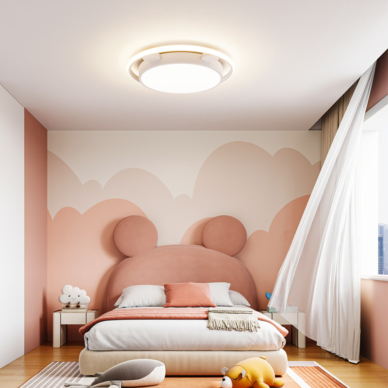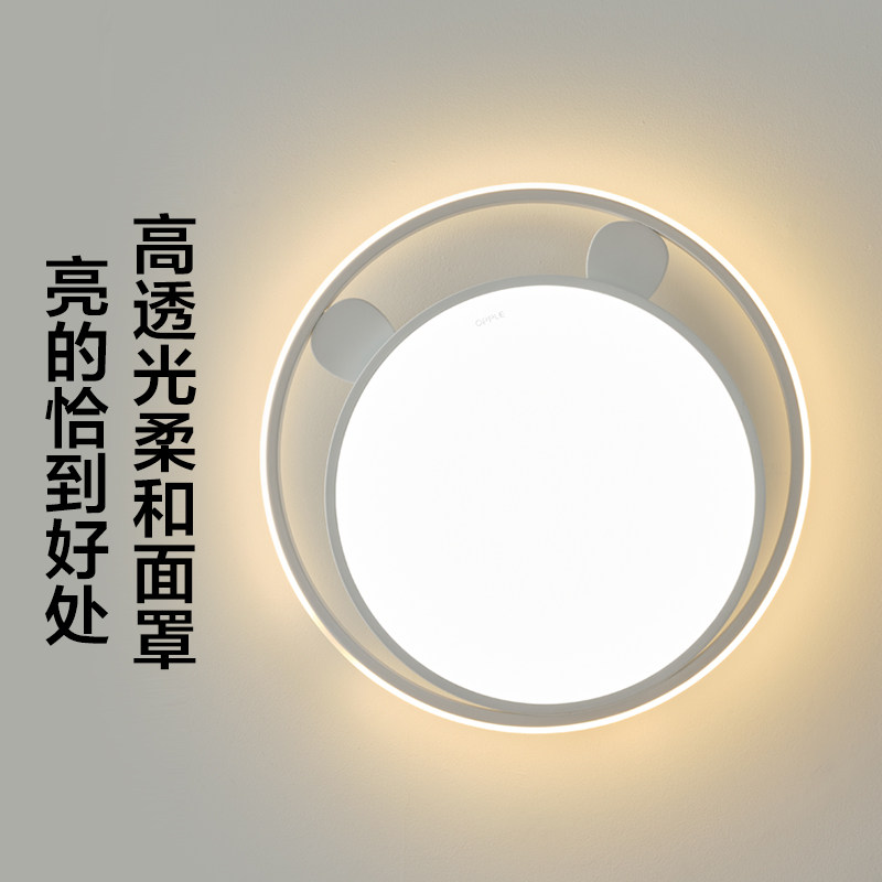 欧普照明萌萌熊圆形奶油风温馨led卧室灯吸顶灯具儿童房卡通灯WS