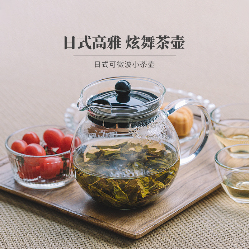 日本iwaki怡万家耐热玻璃进口圆形茶壶日式耐高温透明家用办公室