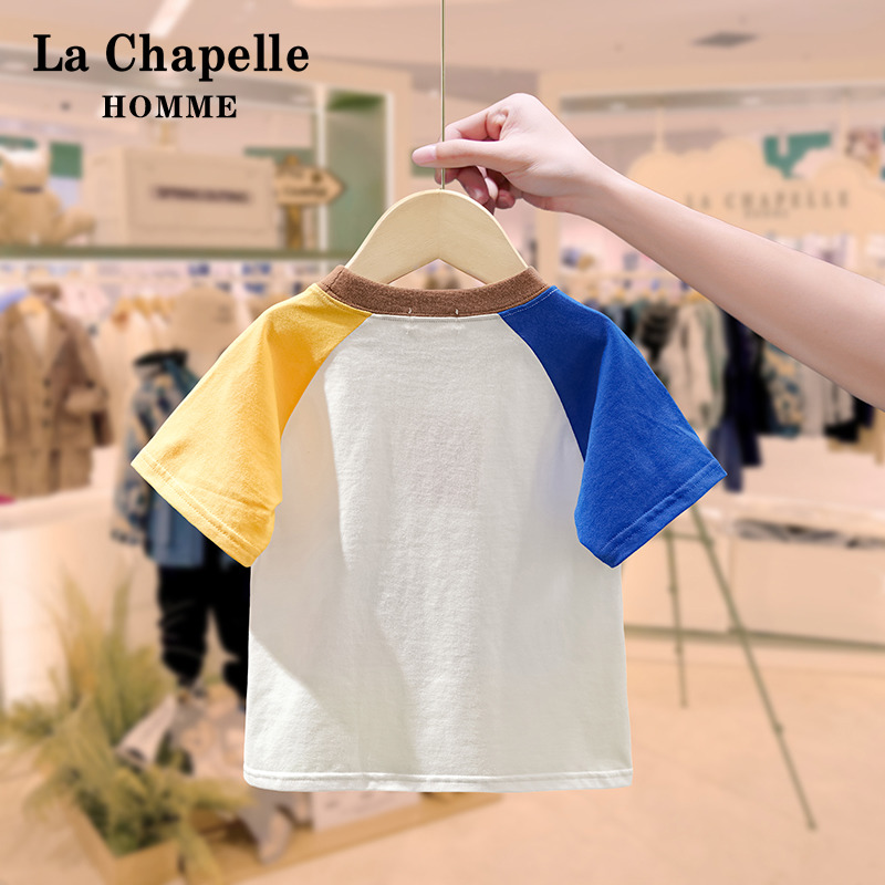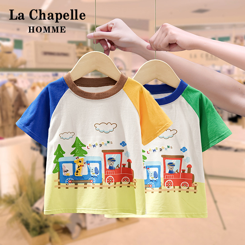 拉夏贝尔童装男童短袖T恤夏季2025新款儿童卡通火车半袖拼色上衣