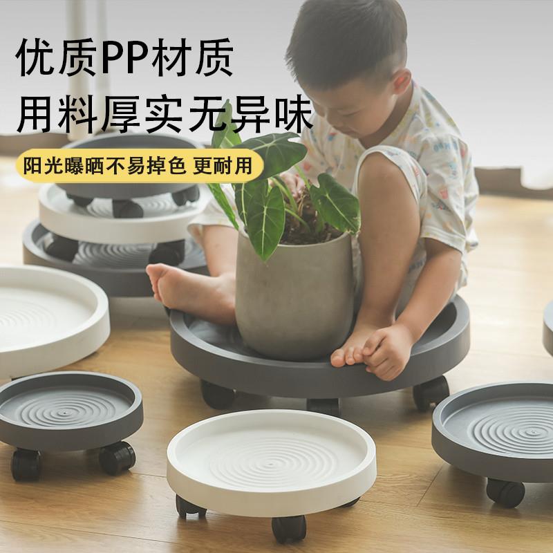 盆栽托盘简约钢化移动花盆带轮滑轮接水盘万向轮底座绿植塑料花盘