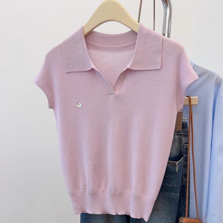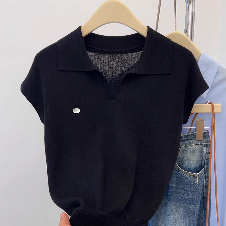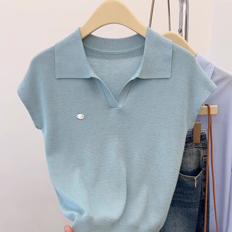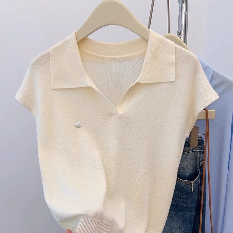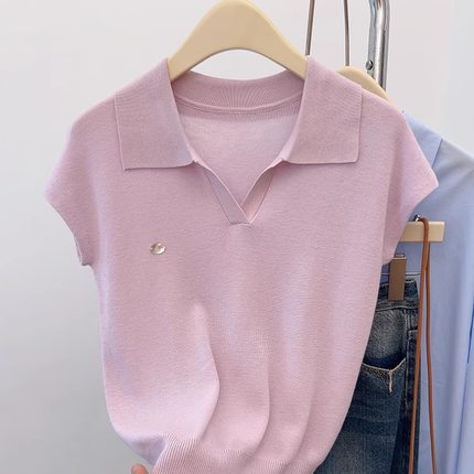宽松遮肚【80-200斤】Polo领针织短袖T恤女夏洋气减龄飞飞袖上衣