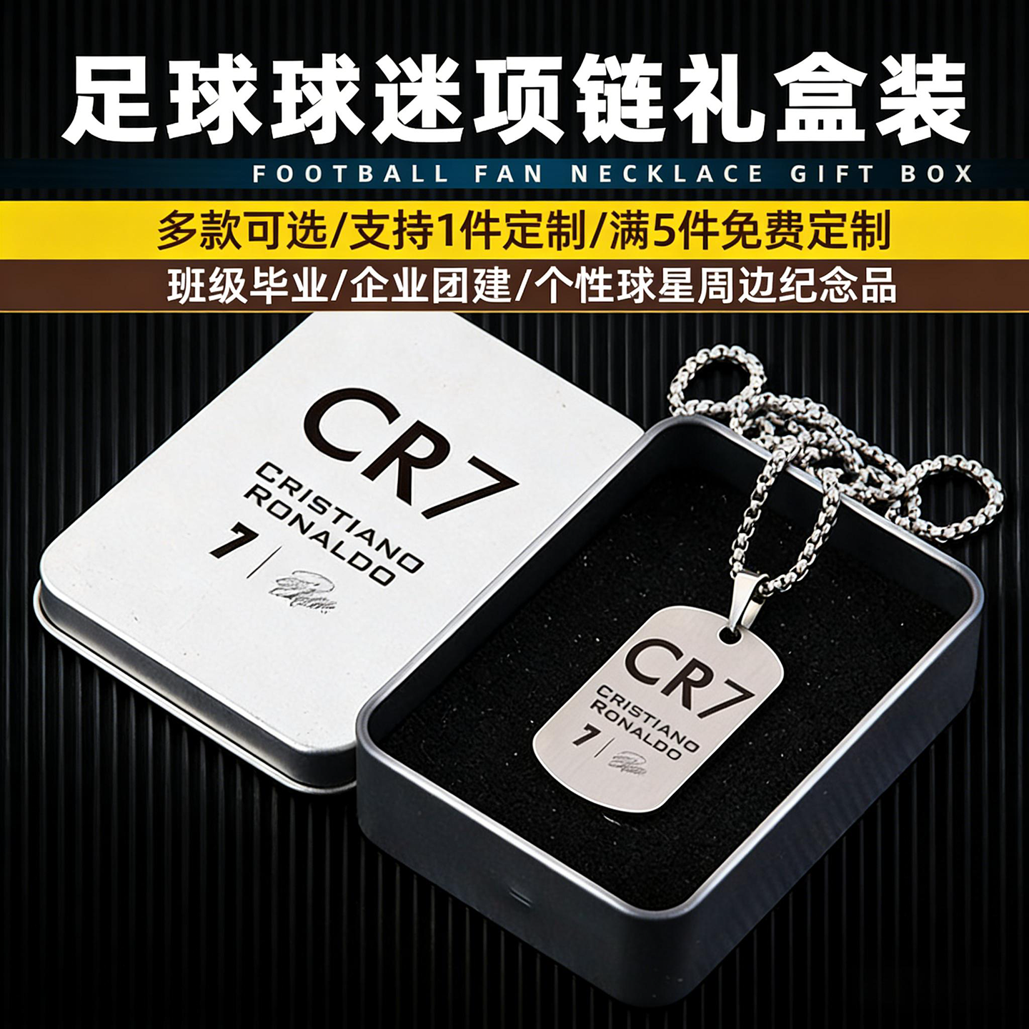 足球挂坠军牌项链皇马周边巴萨手办曼城切尔西纪念品送球迷男礼物