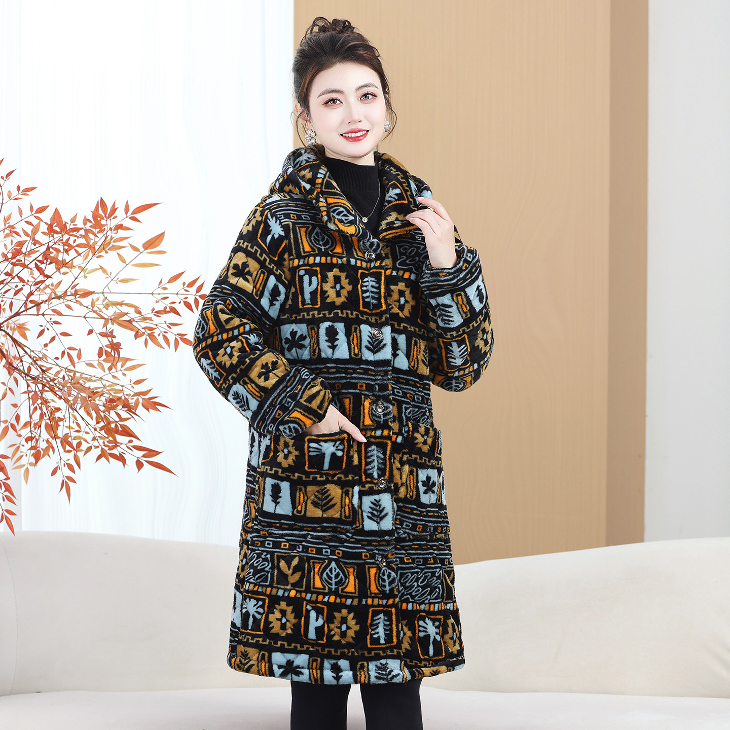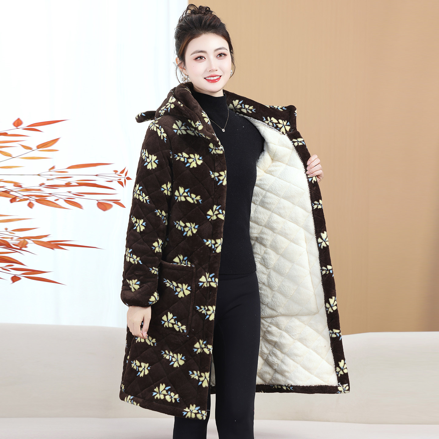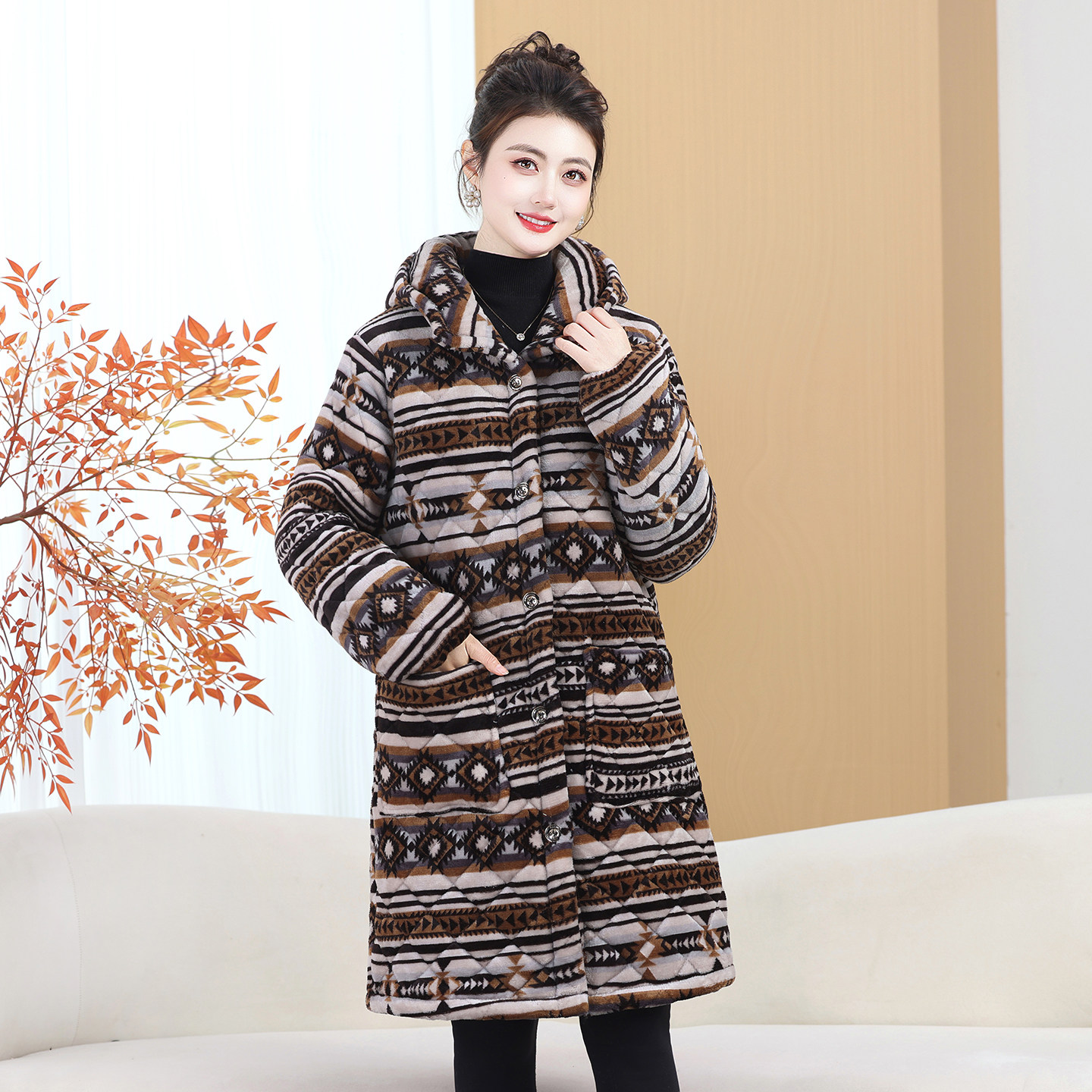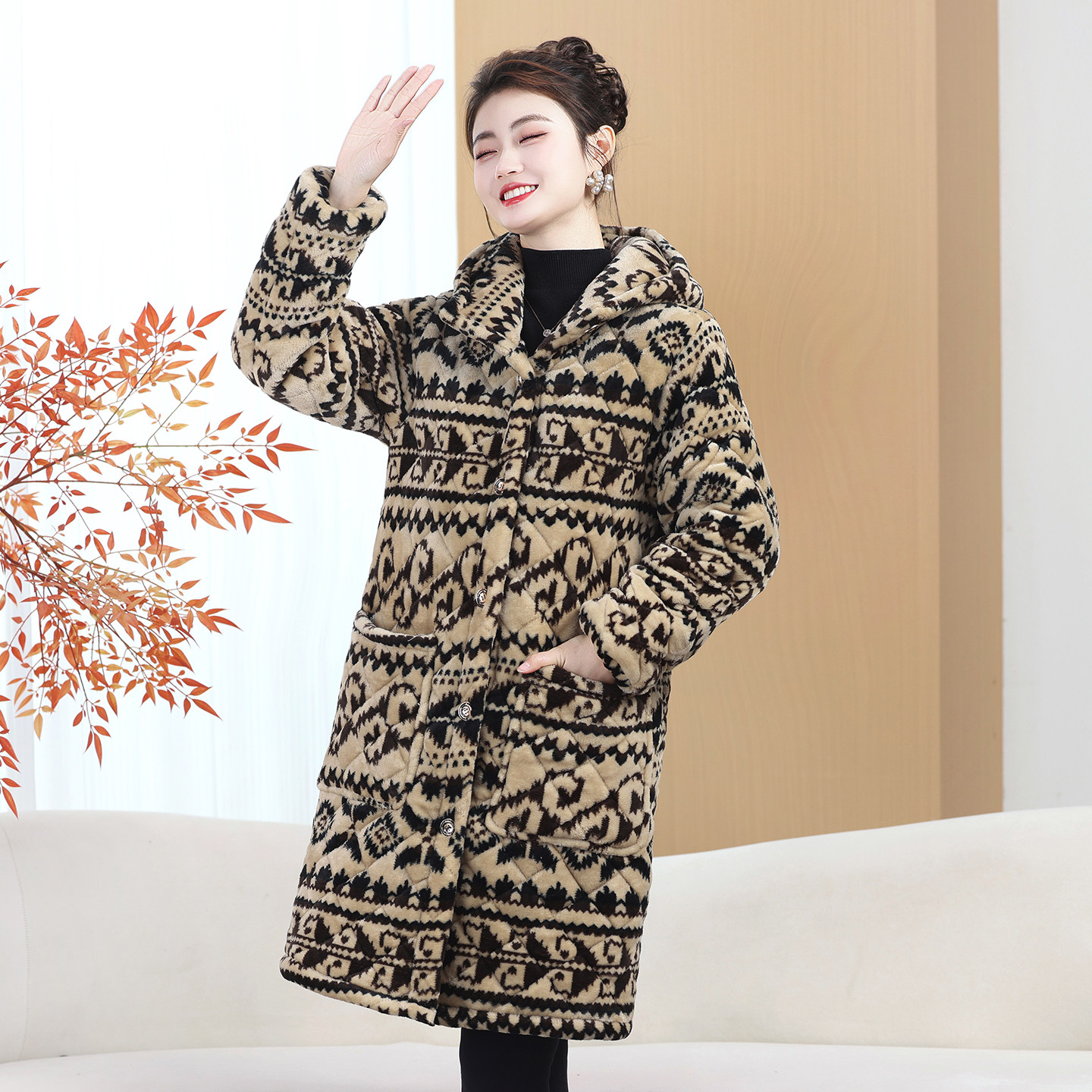 新款加绒加厚棉衣女中长款连帽宽松民族风保暖棉服妈妈装外套省服