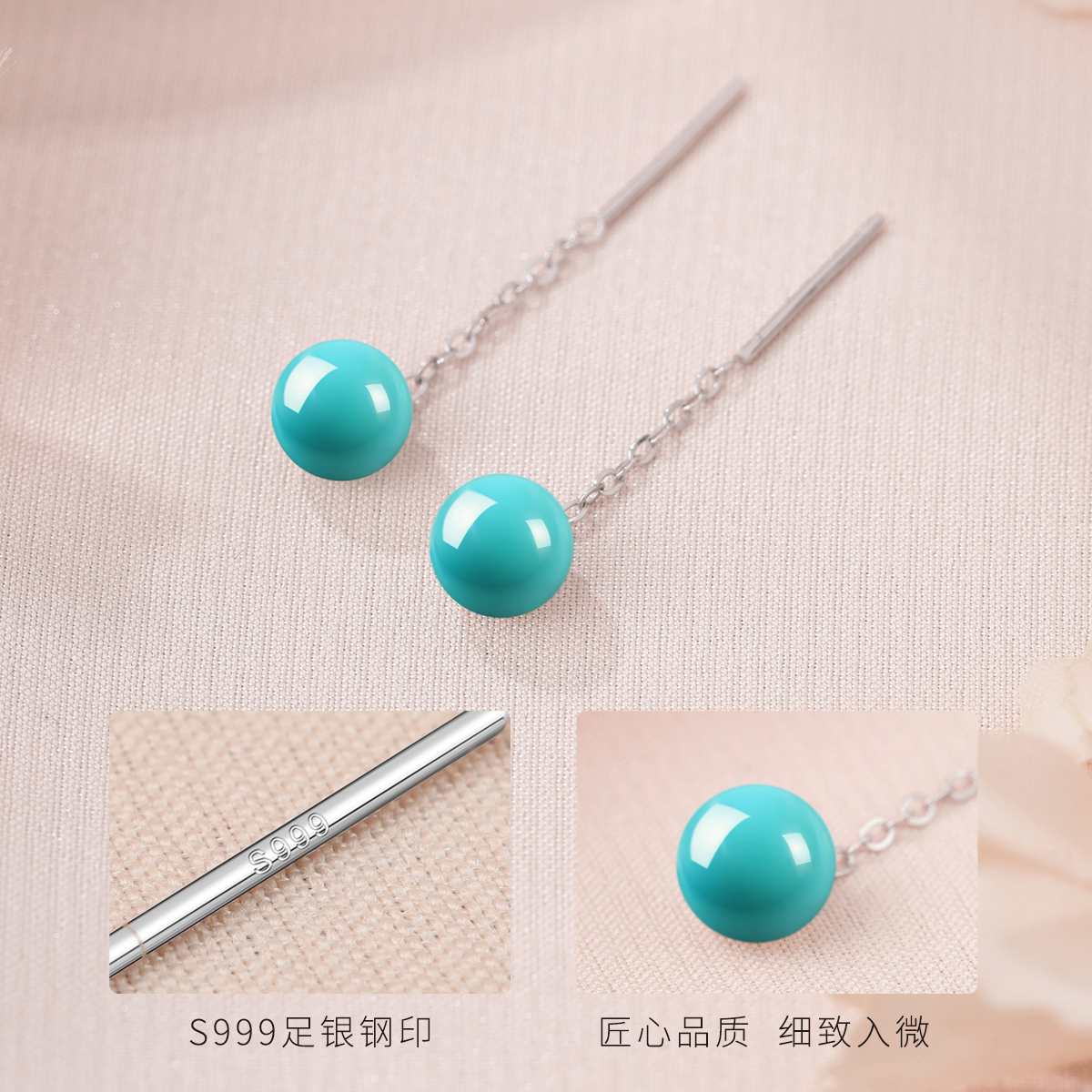 绿松石耳线玉石耳饰2025新款爆款玄学旺财耳钉国风s999纯银耳环女