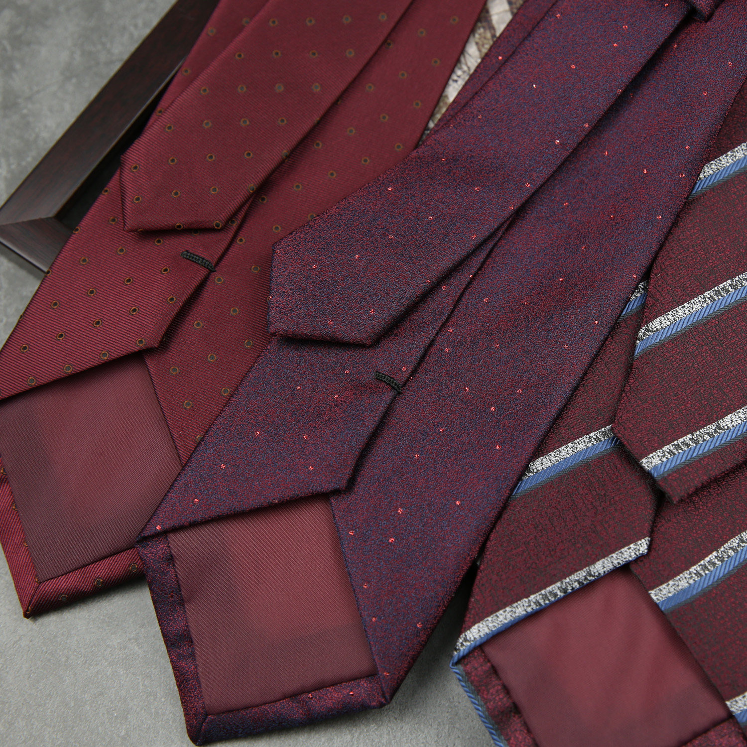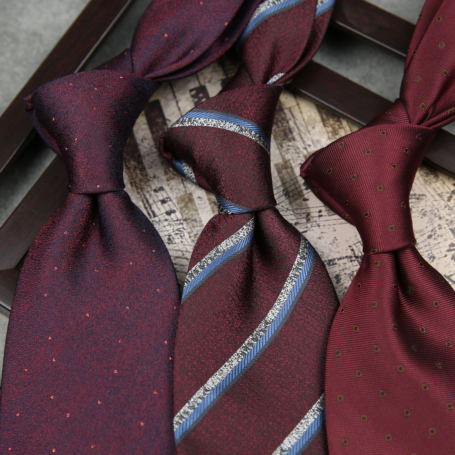 结婚新郎酒红色领带 男士婚礼正装手打商务西装8CM领带