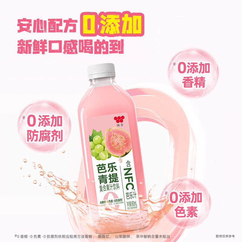【冷链发货】味全每日C果汁900ml*4瓶芭乐青提子水果营养
