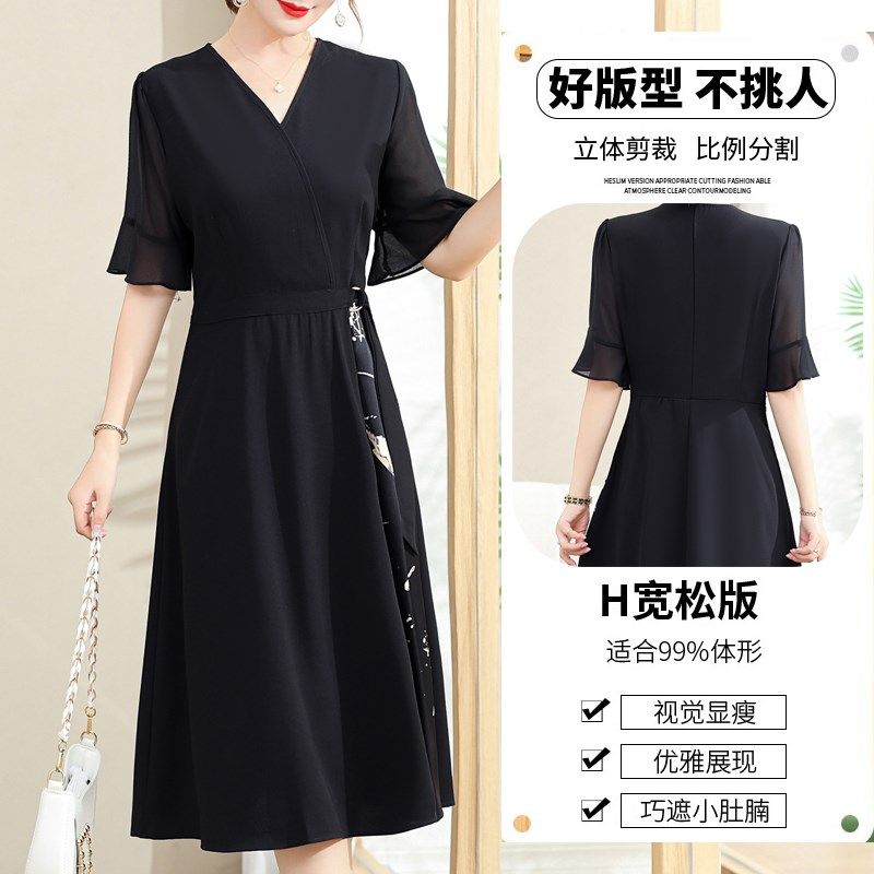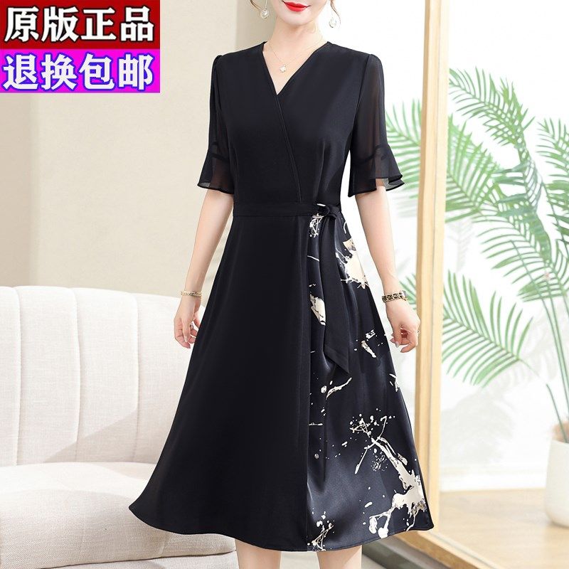 年轻妈妈夏装新款连衣裙洋气时尚40岁中年女士夏季短袖雪纺长裙子