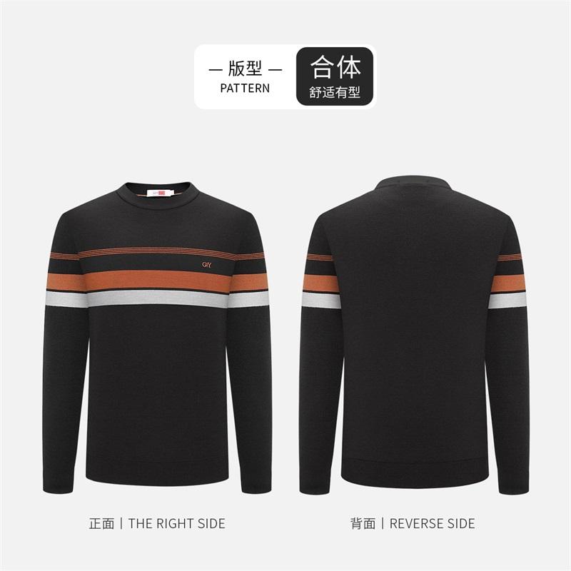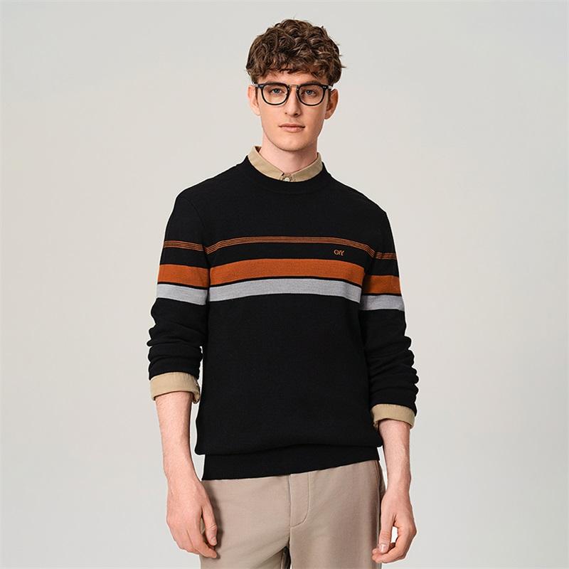 【绵羊毛】金利来GY男士长袖圆领毛衫秋冬条纹保暖针织衫上衣男装