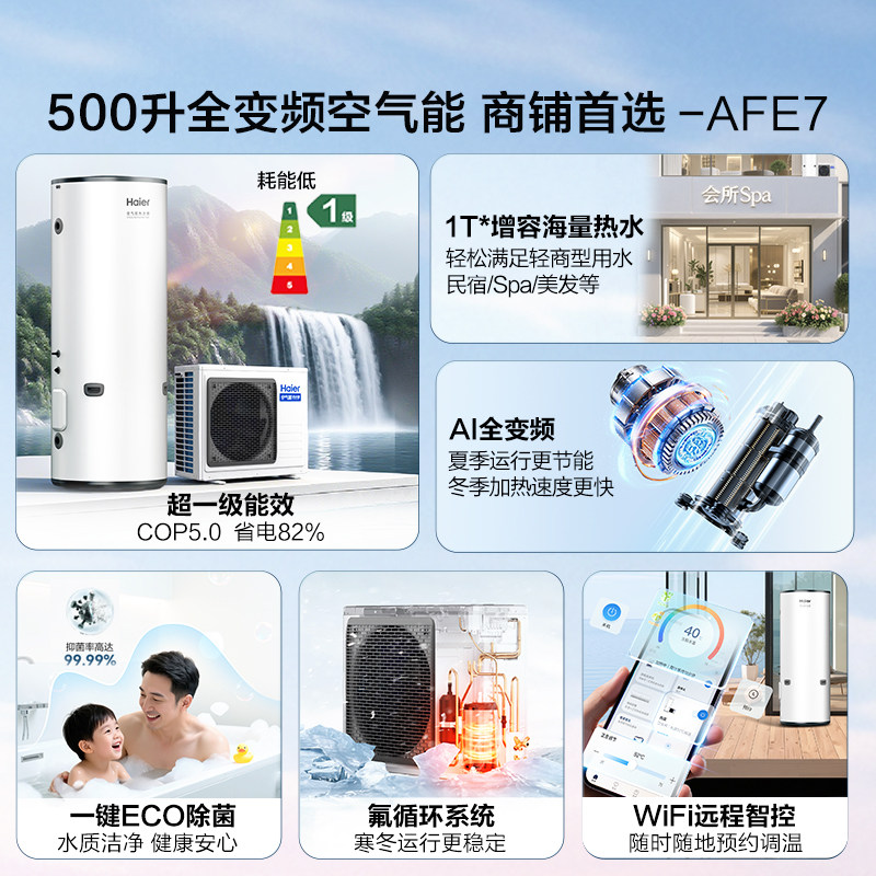 海尔空气能热水器商用500L全变频超一级健身房宿舍工地用热泵AFE7