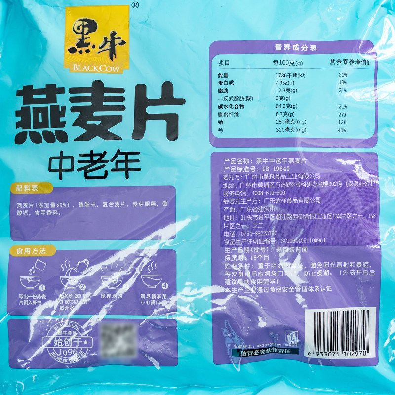 黑牛中老年燕麦片880g冲饮即食点心下午茶饮品早餐麦片冲泡