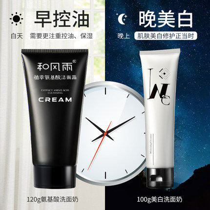 和风雨早晚洗面奶男士专用美白除螨控油祛痘补水保湿洁面乳护肤品