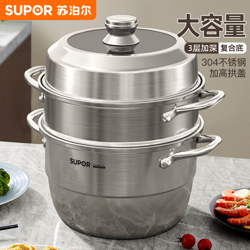 苏泊尔蒸锅家用304不锈钢加厚3层蒸煮锅三层蒸鱼锅欧式燃气电磁炉