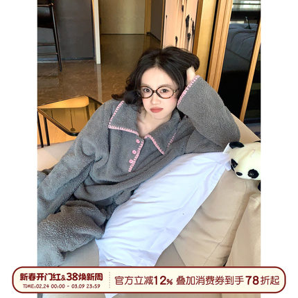 馨帮帮Homedress 撞色边毛绒睡衣女冬季加厚休闲可外穿家居服套装