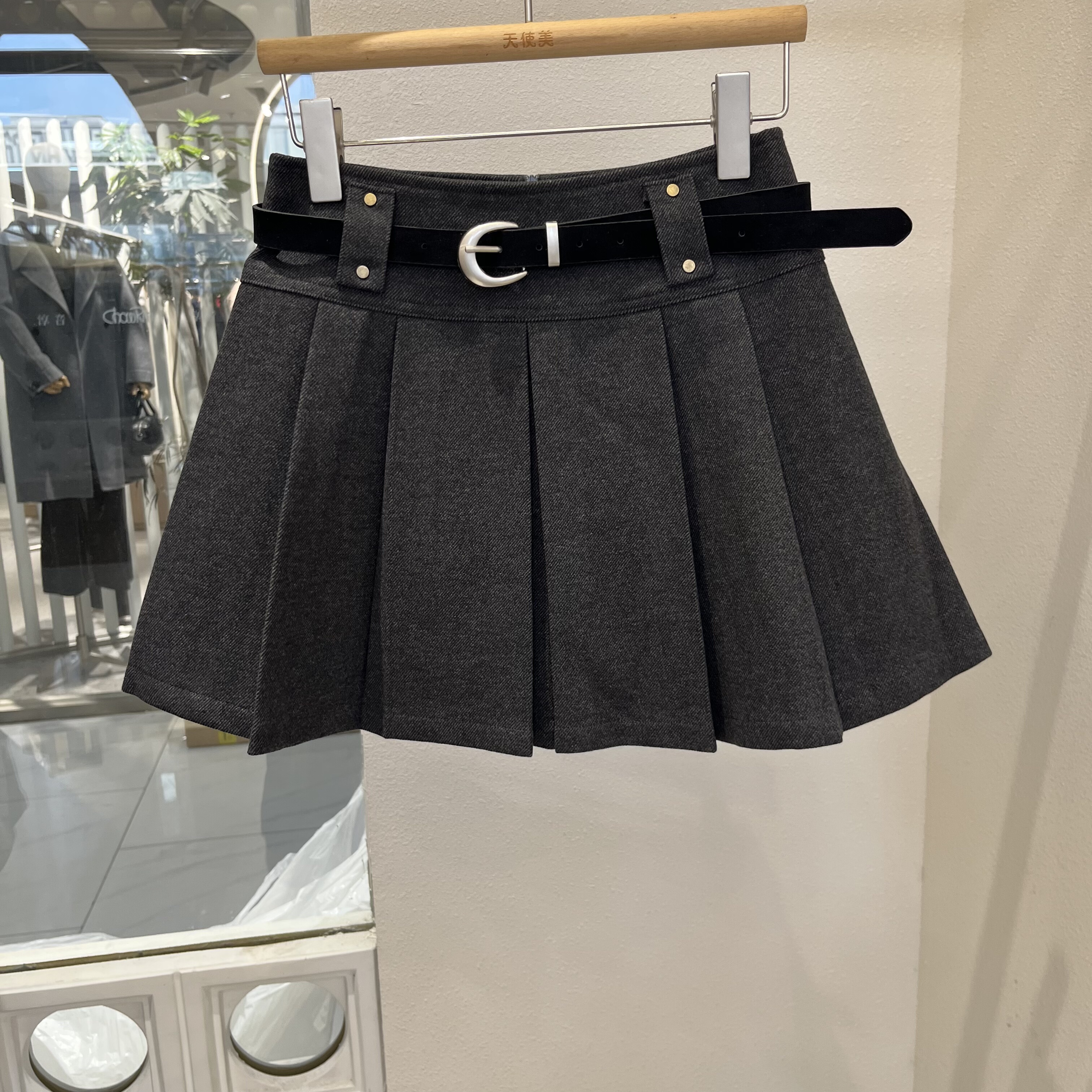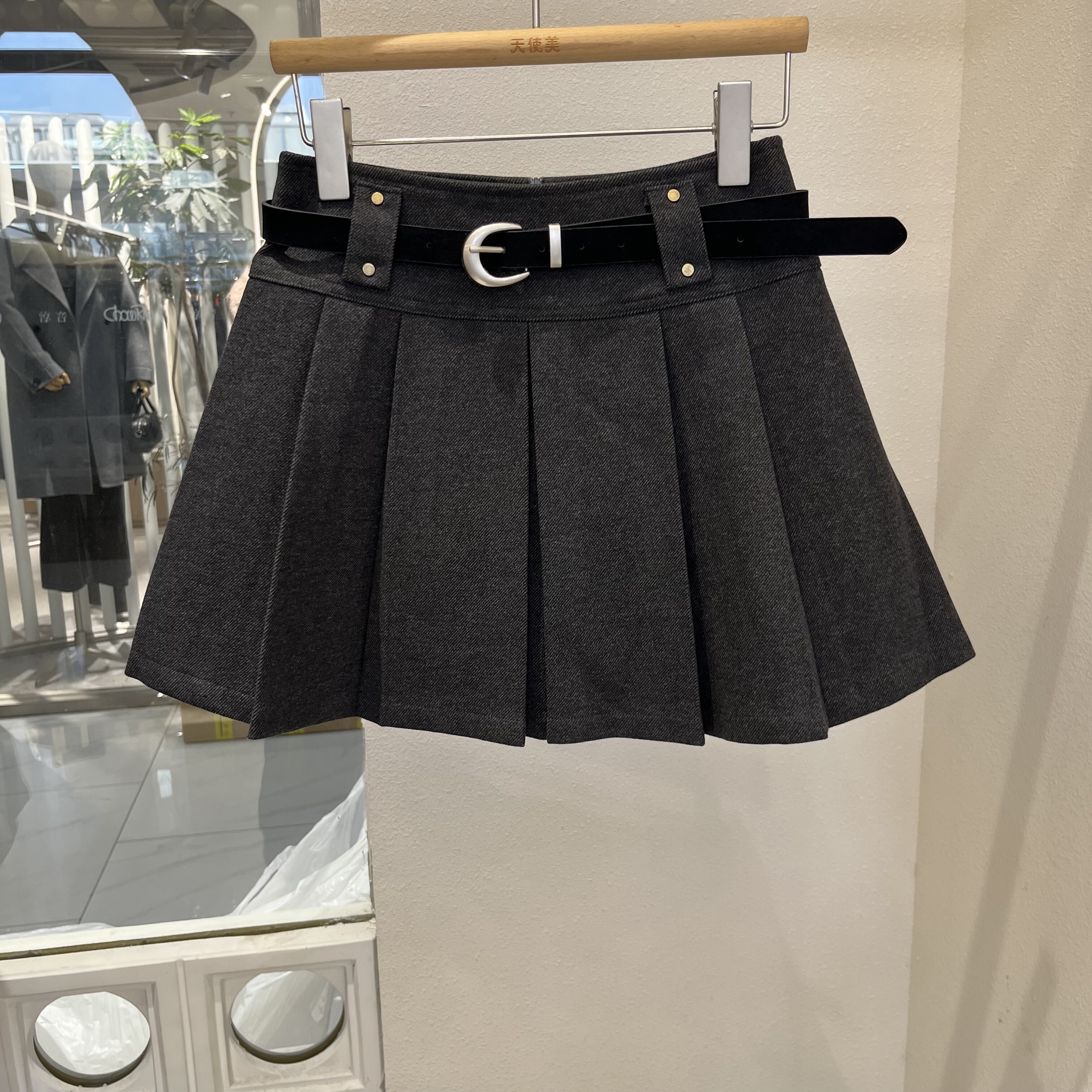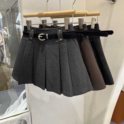 2025秋冬新款韩版高腰显瘦百搭A字裙防走光毛呢百褶半身裙女短裙