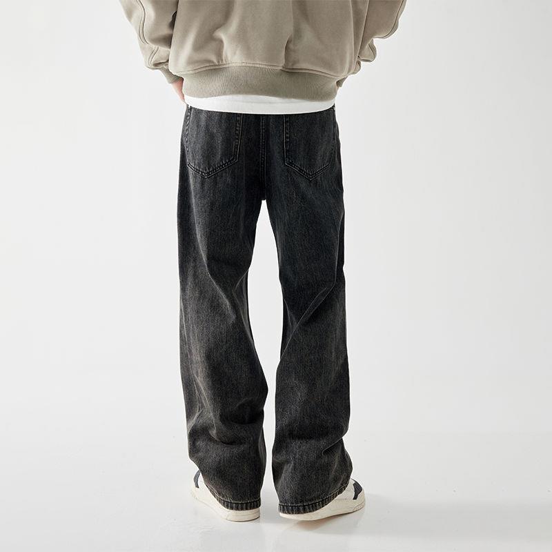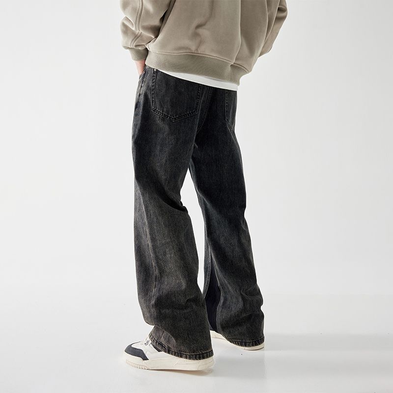 秋冬新款休闲中高腰喇叭复古墨黑色水洗牛仔裤基础简约百搭男