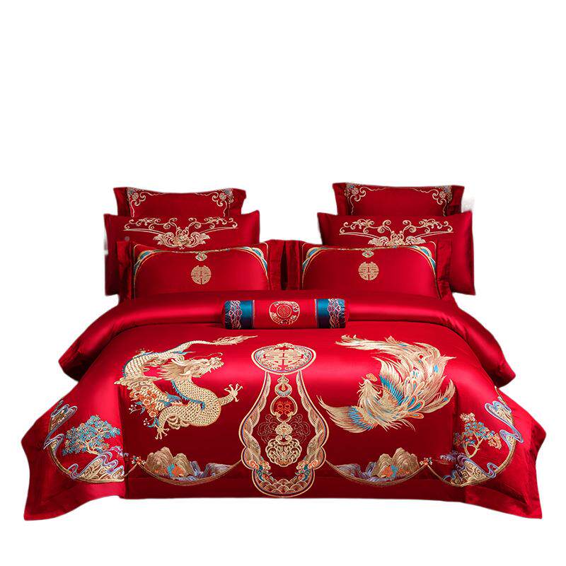 大中式红绣婚庆刺四件套纯棉床单被套BLY-2025结婚上用床品全棉南