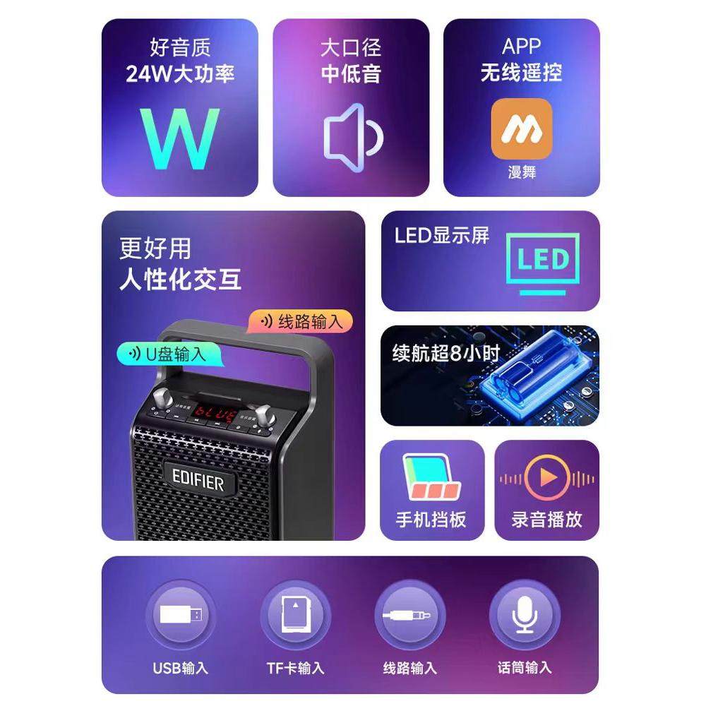 漫步者PP205户外音响广场舞k歌大功率唱歌移动手提便携蓝牙小音箱