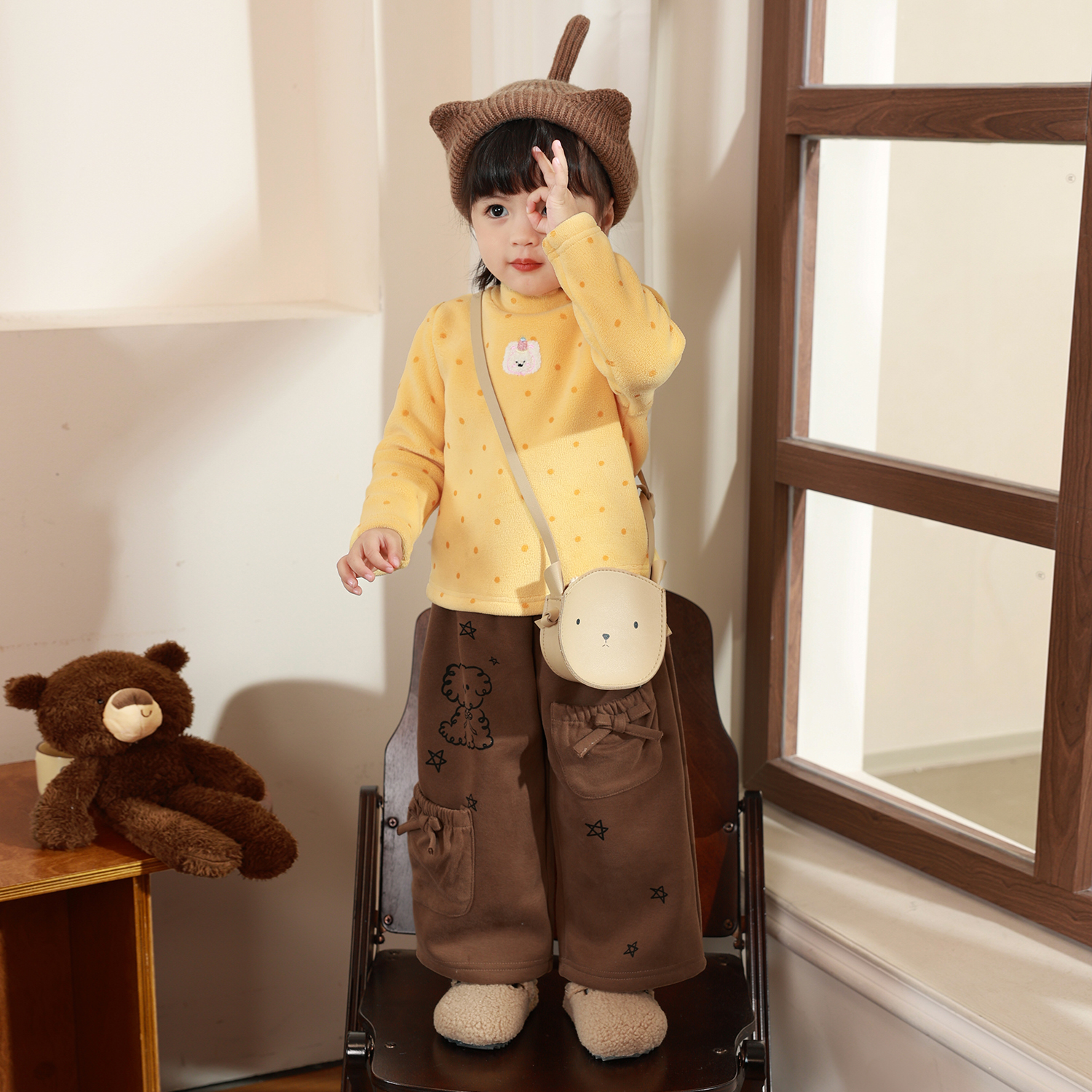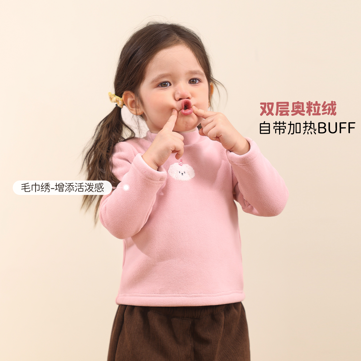 小o爸女婴童 宝宝加绒打底衫t恤2025冬季新款婴儿加厚摇粒绒上衣