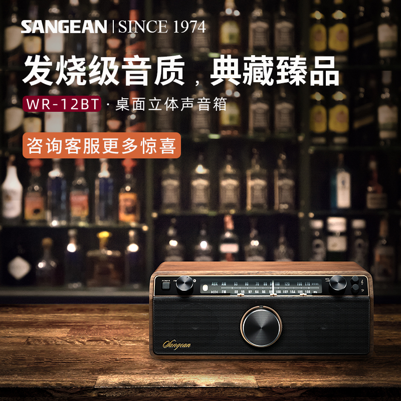 SANGEAN/山进 WR-12BT蓝牙音箱发烧级复古立体声收音机地银炮音响