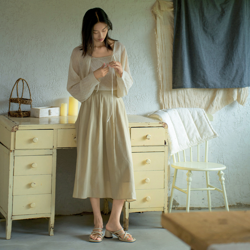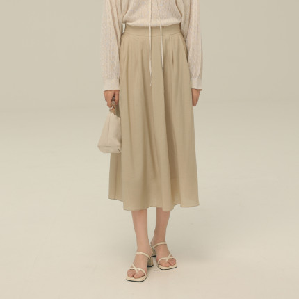 AIRIQI夏季新款百搭复古休闲高腰显瘦A字裙伞裙半身裙女AH42BQ357