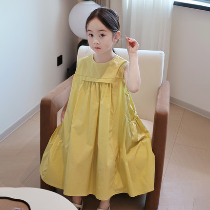韩版女童连衣裙中长款纯棉休闲儿童装夏季裙子女孩海边无袖公主裙