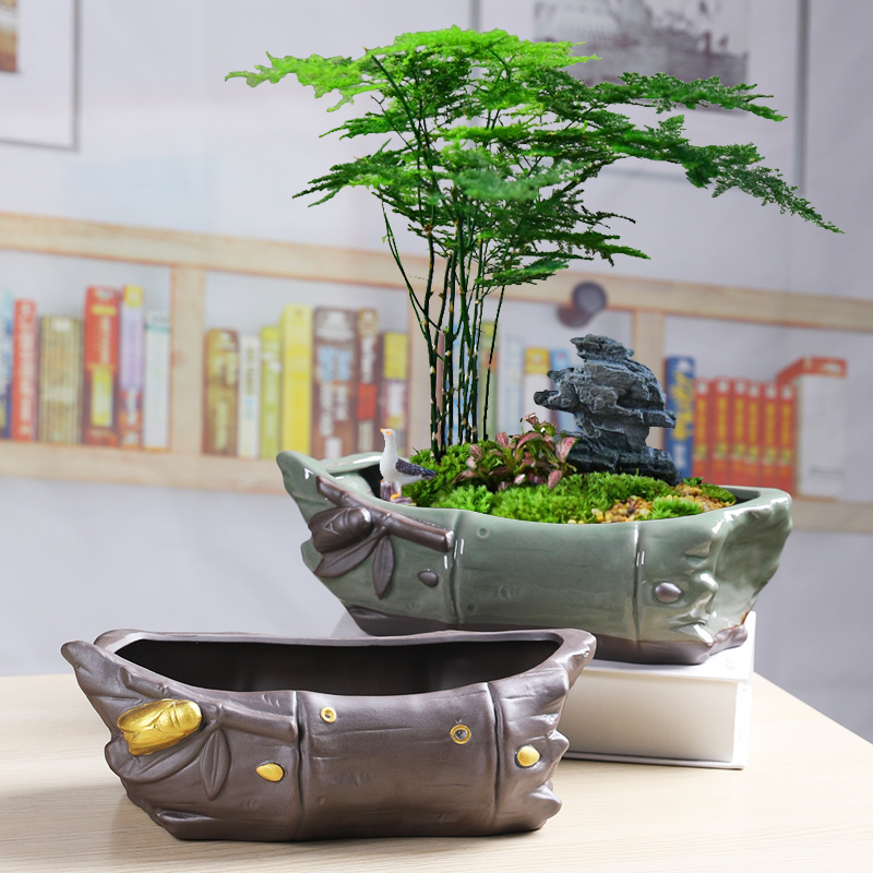 多肉花盆陶瓷多肉兰花文竹复古紫砂创意大小口径家用造景组合盆景