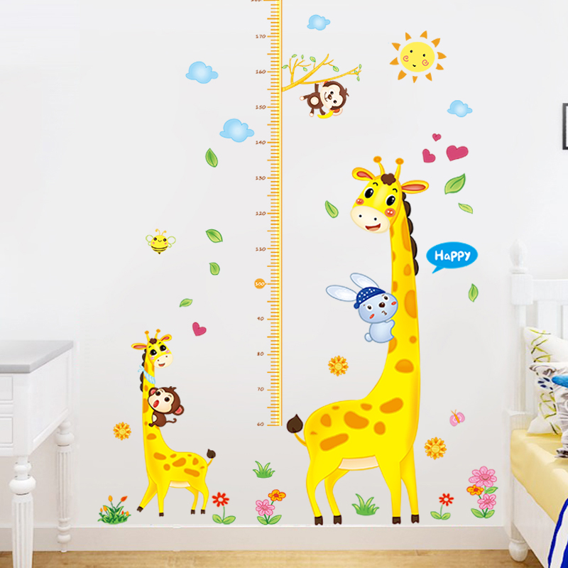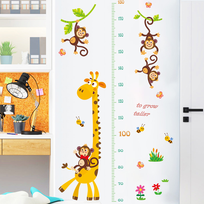儿童量身高墙贴可移除墙壁装饰婴儿宝宝身高测量仪尺卡通贴纸画