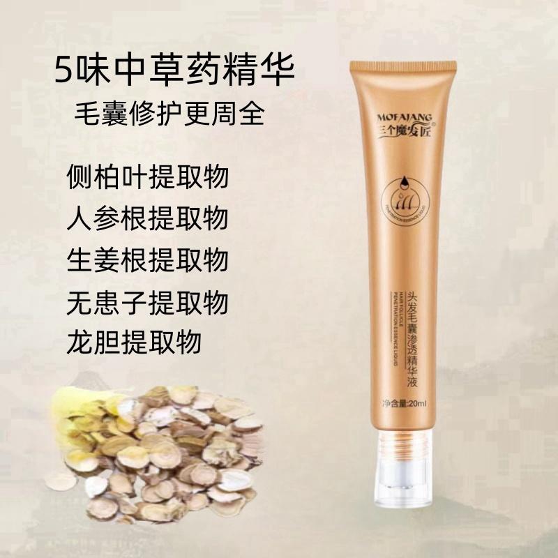 三个魔发匠防脱生发毛囊渗透精华修护液搭配生姜洗发水效果更佳