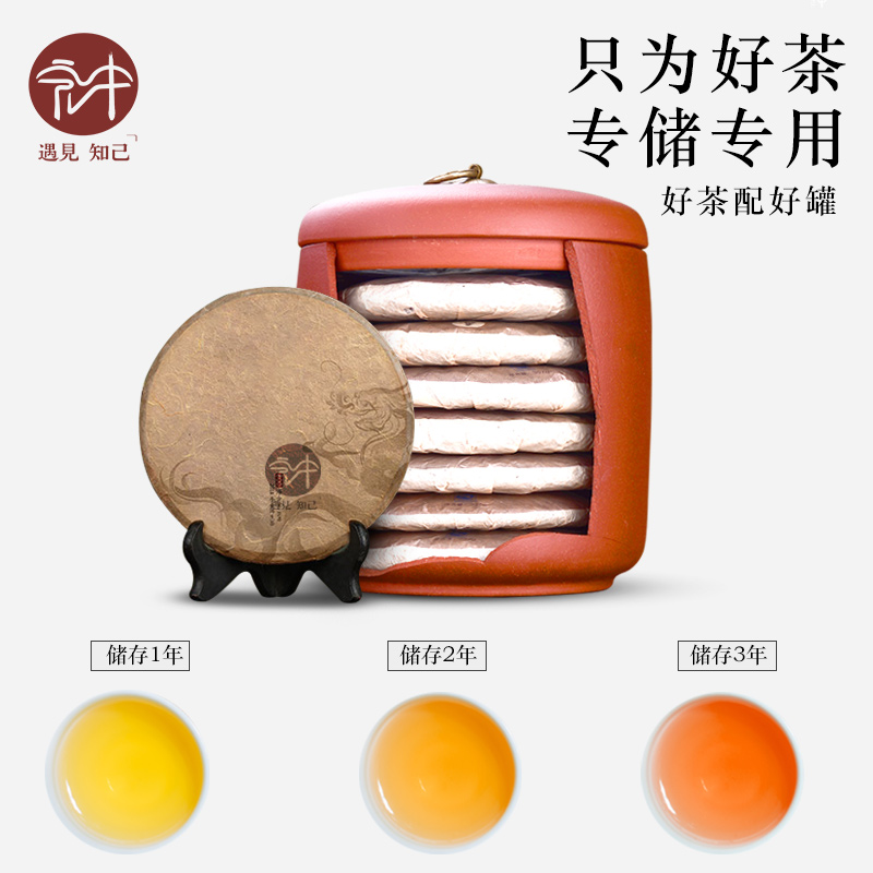 宏中 宜兴紫砂茶叶罐 大号普洱七饼茶罐家用陶瓷密封罐茶叶包装盒
