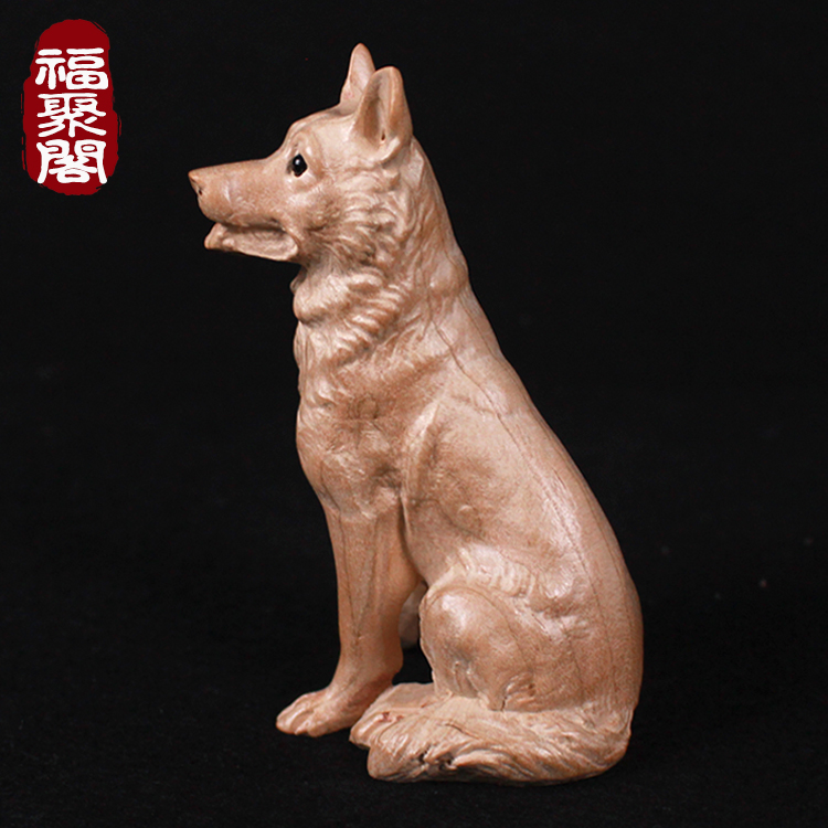桃木狗摆件旺财小狗狼狗实木雕刻十二生肖客厅立体招财木质工艺品