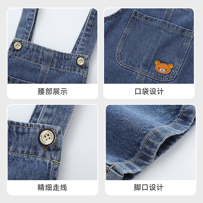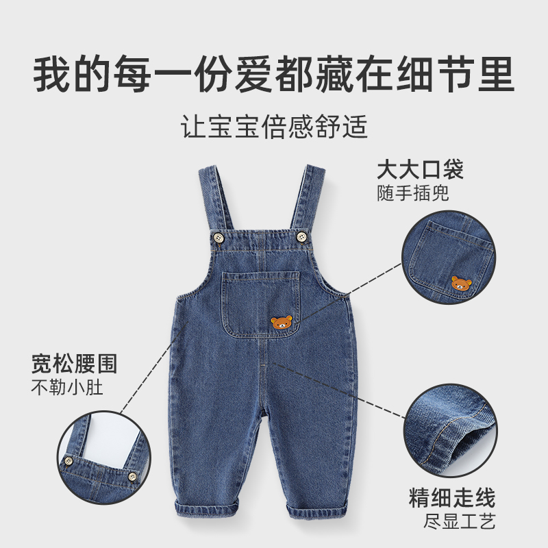 婧麒宝宝背带裤秋装男童童装小童秋款婴儿裤子女童大屁屁裤牛仔裤