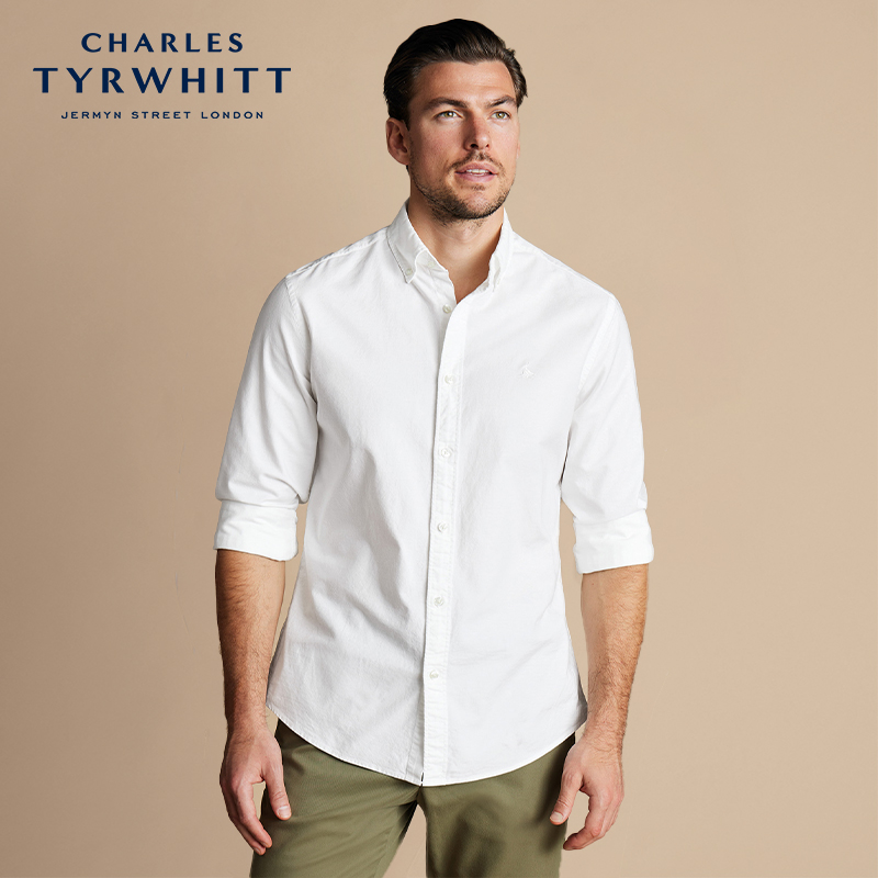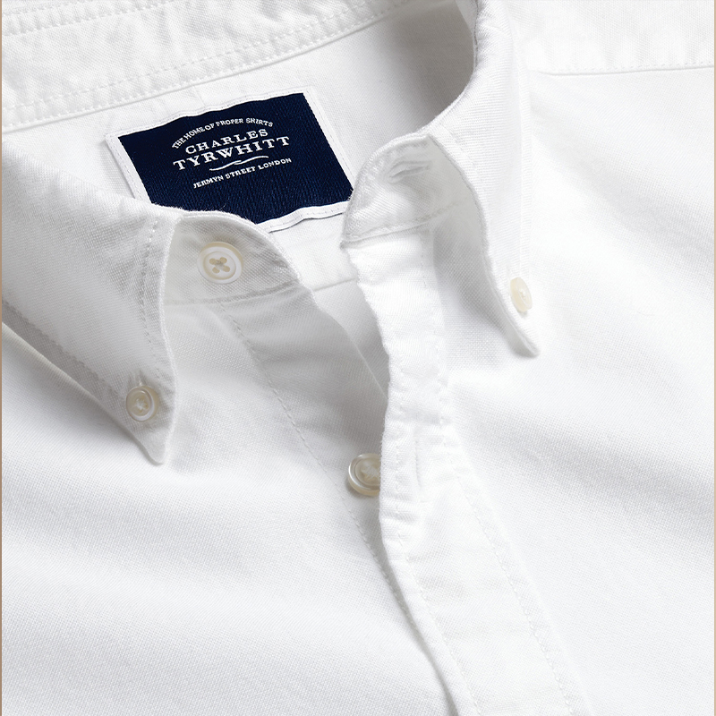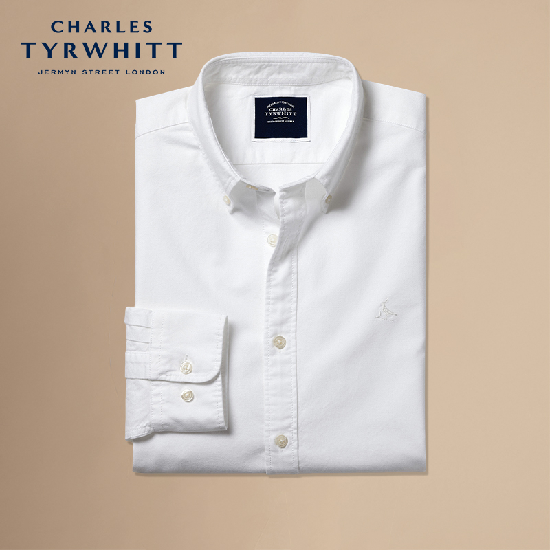 CHARLES TYRWHITT超修身版型白色简约纯色休闲衬衣牛津纺衬衫男