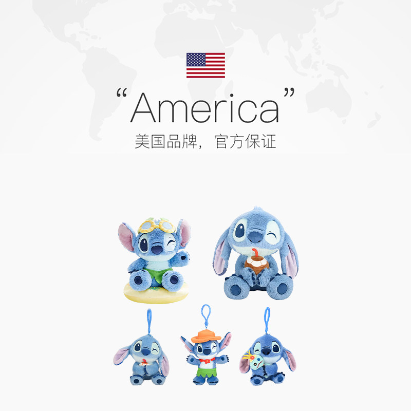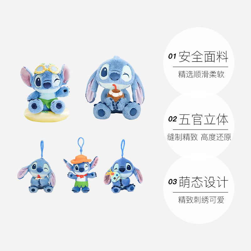 【自营】迪士尼正版史迪奇玩偶夏日系列毛绒玩具包包挂件钥匙扣