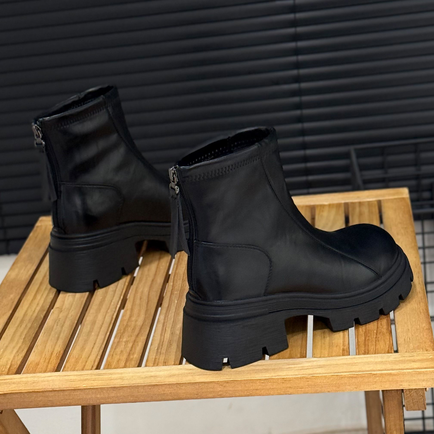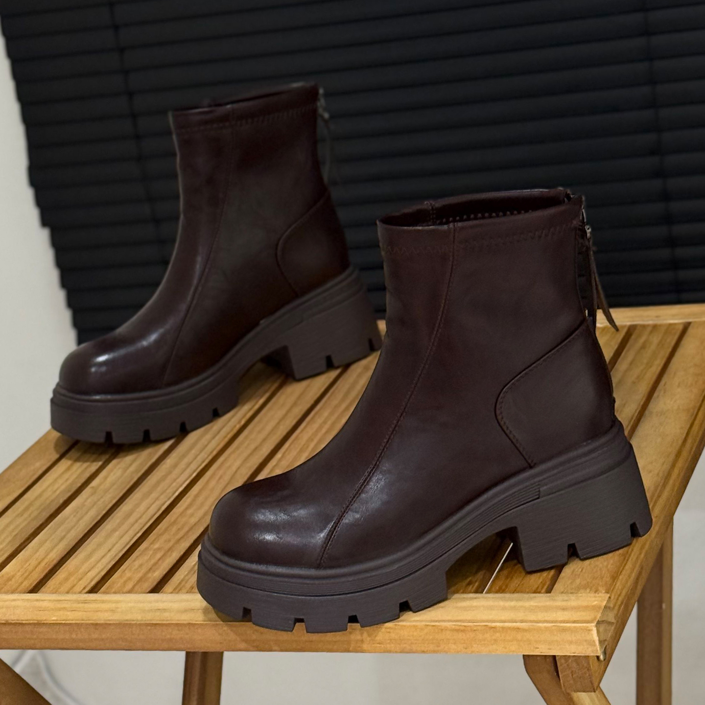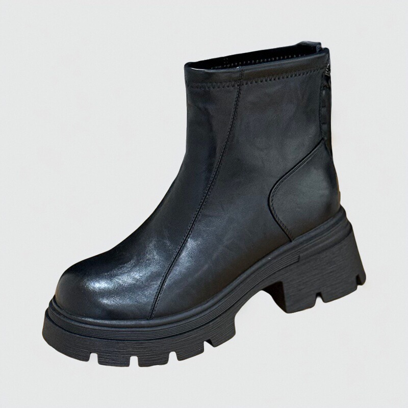 6cm增高粗跟马丁靴秋冬加绒短靴