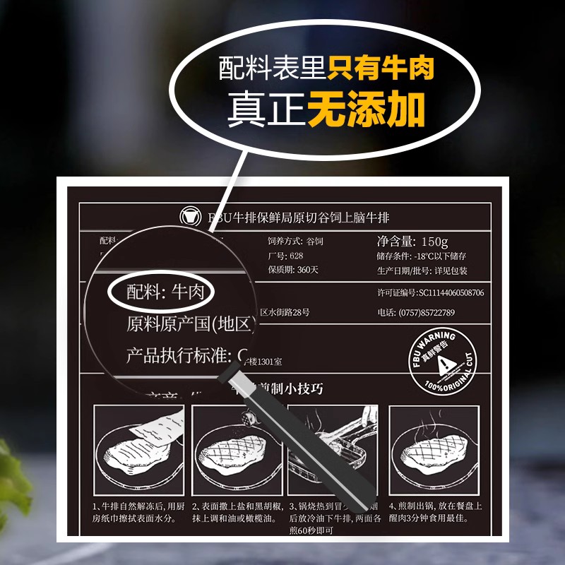 FBU牛排保鲜局精选肉眼西冷牛扒雪花牛肉上脑原切牛排150g/片*6盒