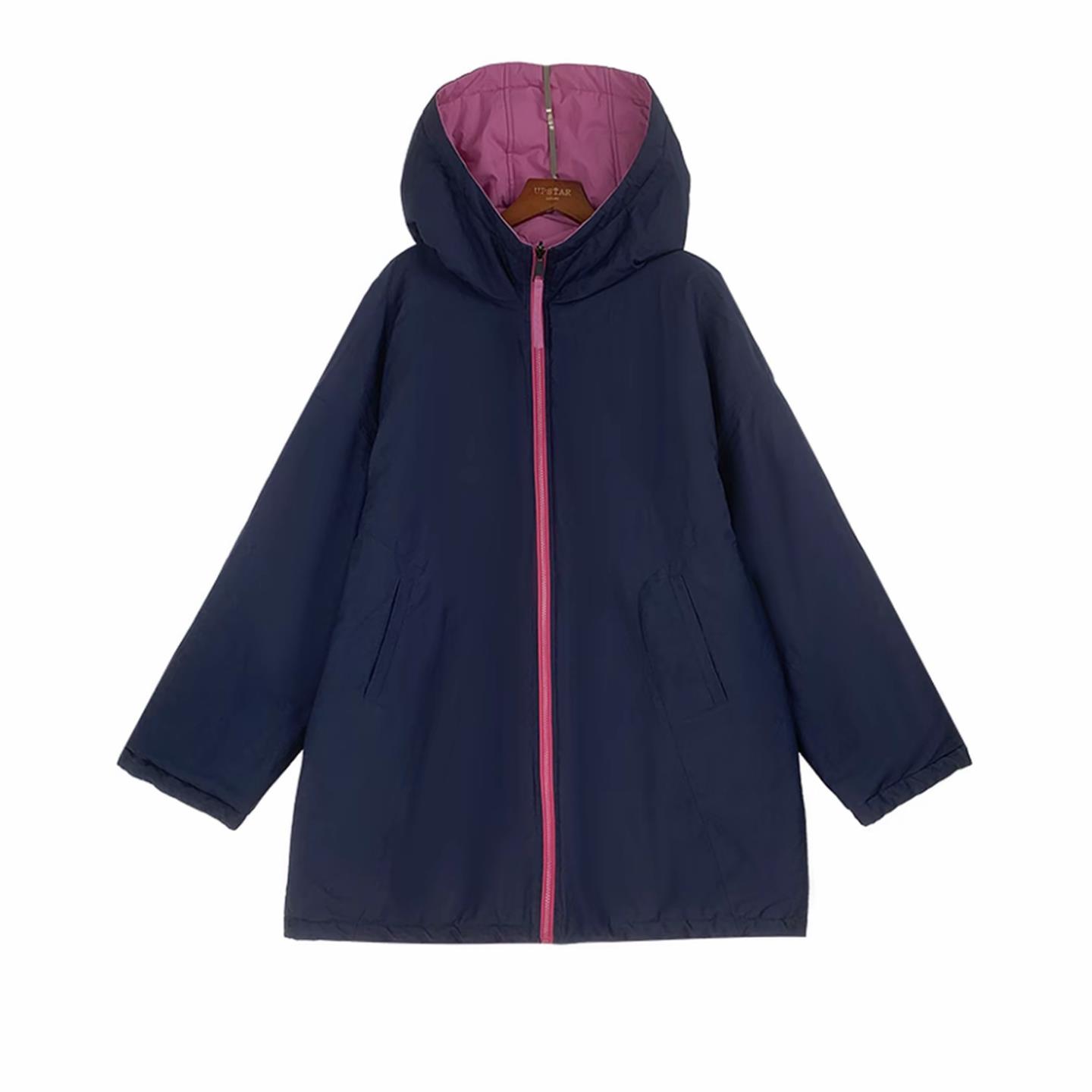 冬季时尚休闲宽松中长款夹棉外套女秋冬派克服双面穿连帽棉衣棉服