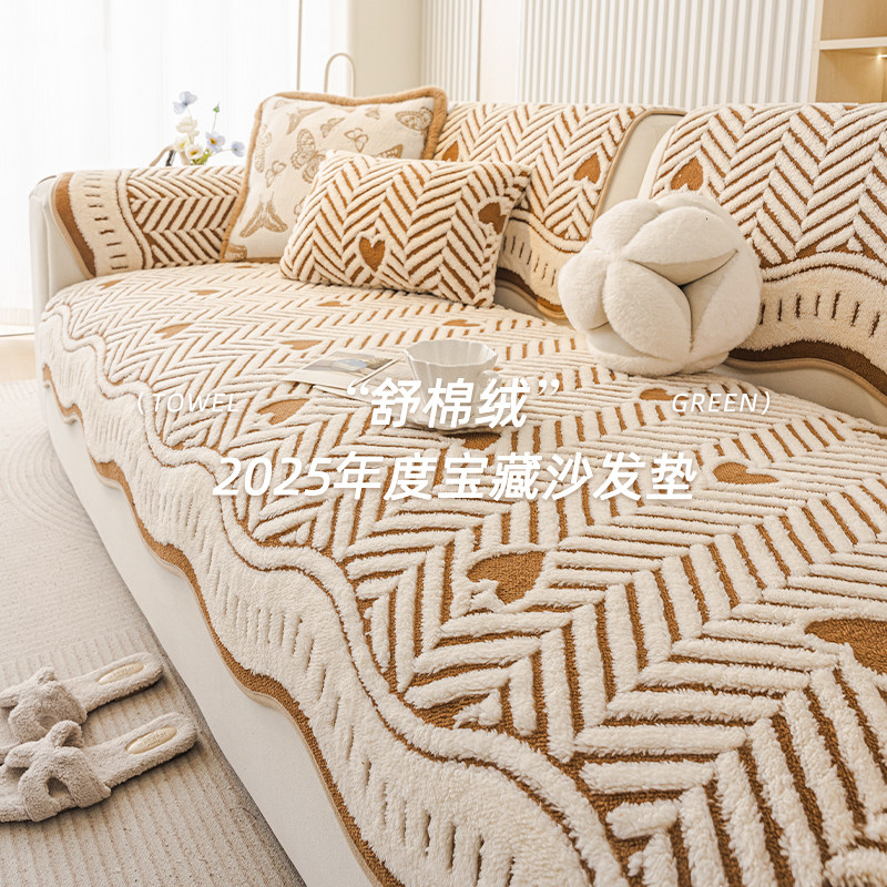 冬天沙发垫2025新款毛绒加厚直排防猫抓冬用罩套盖布皮沙发坐垫子