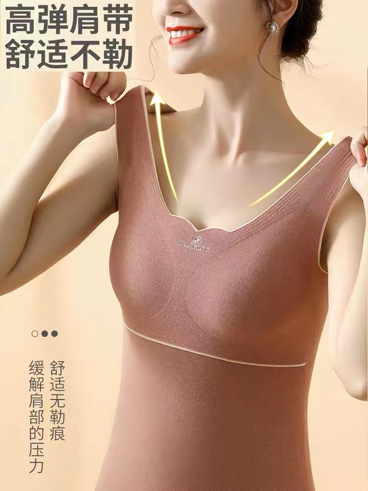 大码德绒保暖贴身内衣女冬季磨毛加绒加厚无痕打底带胸垫发热背心