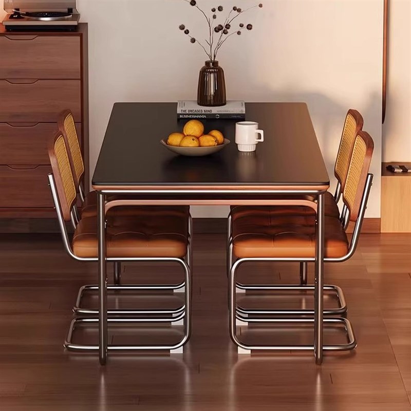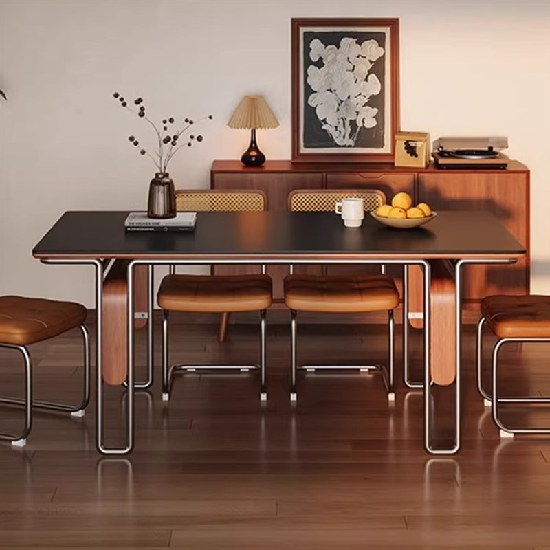 复古岩板实木餐桌家用小户型包豪斯高端长方形中古风家具饭桌椅子
