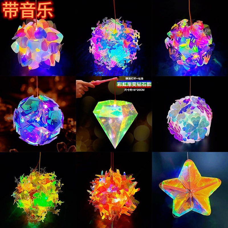 速发中秋镭射炫彩发光音乐花灯手提灯笼灯笼玩具灯七彩摆摊小商品