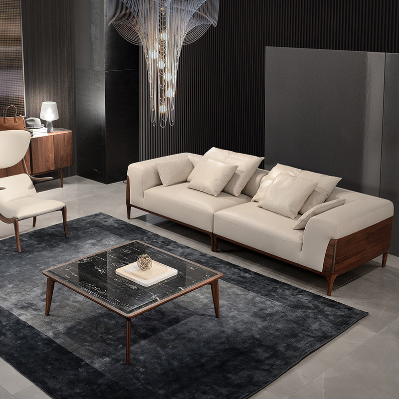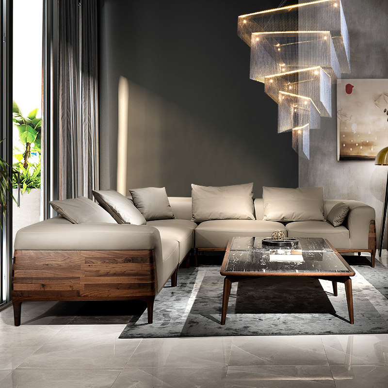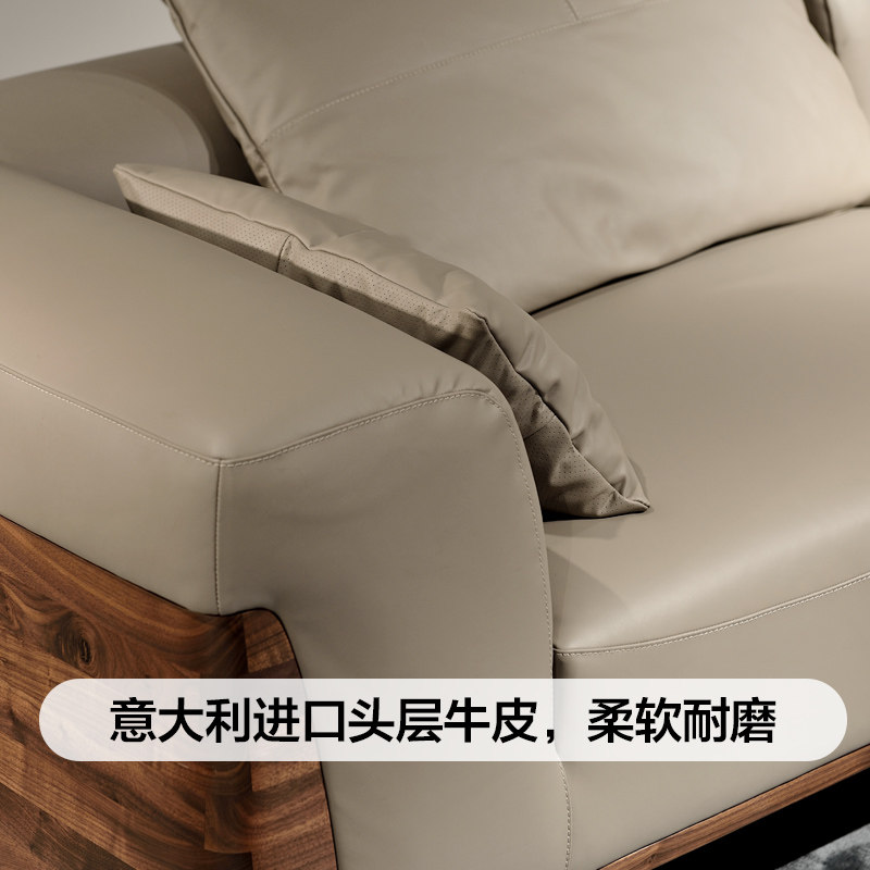 北美黑胡桃木沙发实木真皮轻奢客厅北欧羽绒意式极简奢华头层牛皮