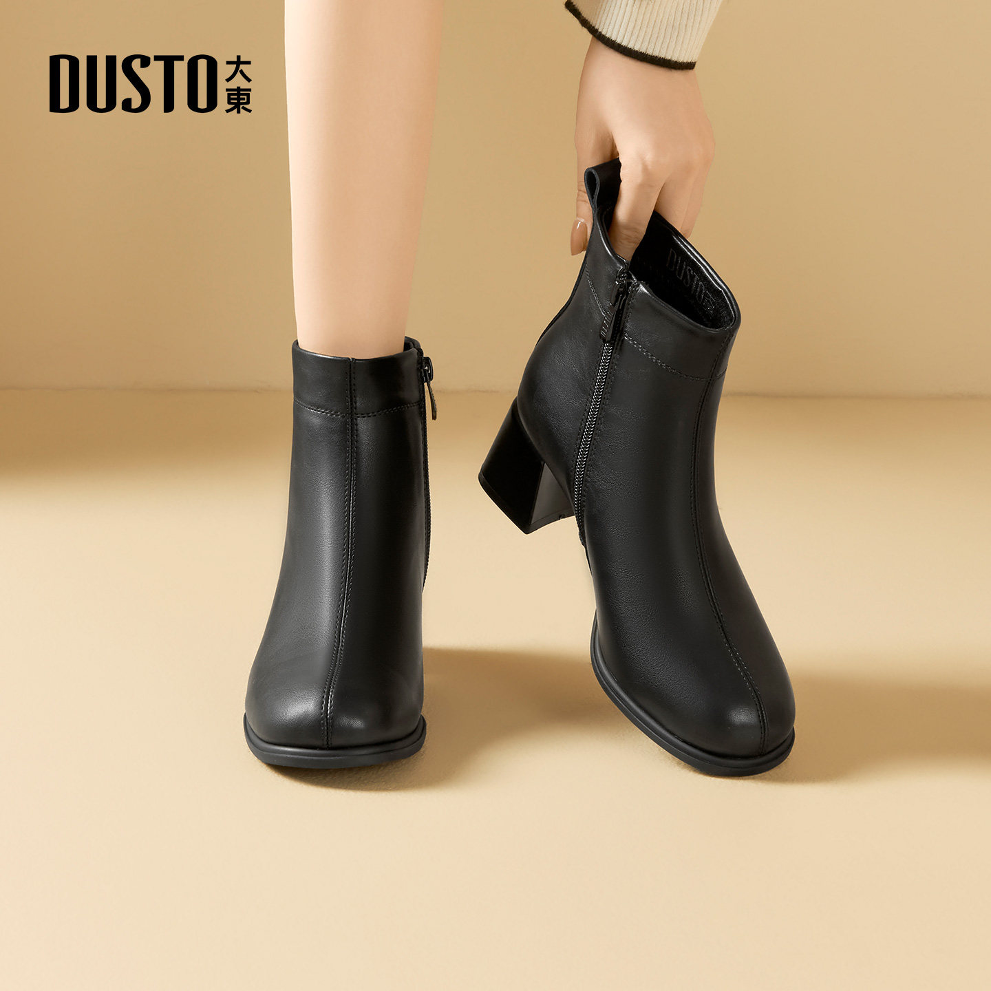 大东dd高跟短靴2025新款冬季复古瘦瘦粗跟女士百搭女款马丁女靴子