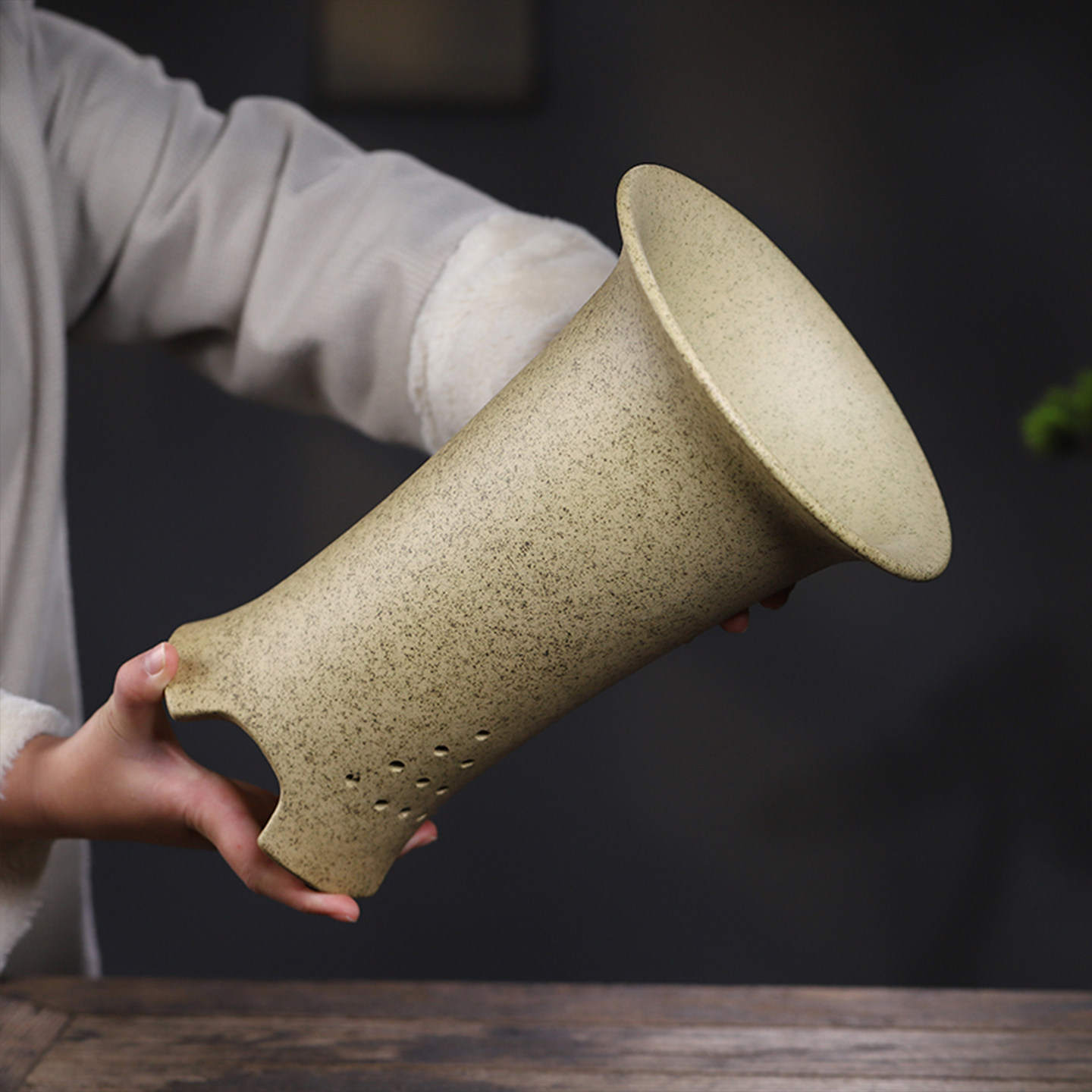 宜兴中式简约紫砂透气兰花盆