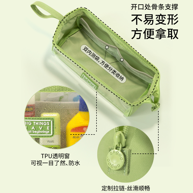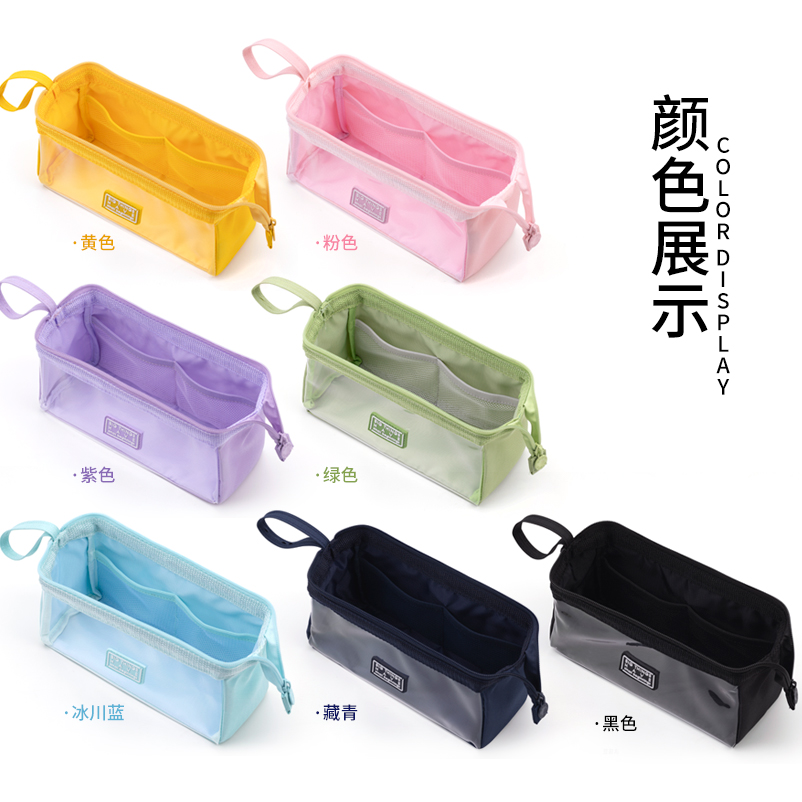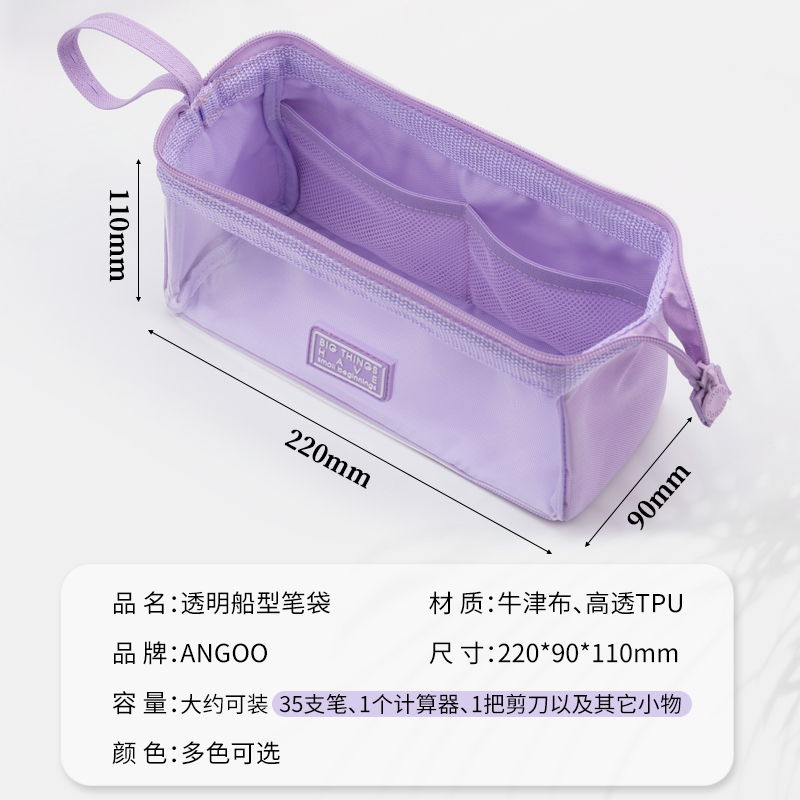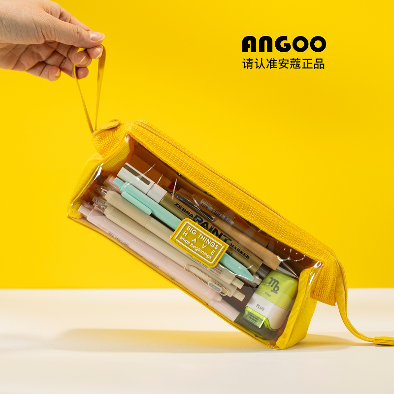 angoo透明笔袋简约糖果色文具袋大容量ins日系高颜值小众新款笔袋女小学生流行中学生文具盒女孩高中生铅笔盒