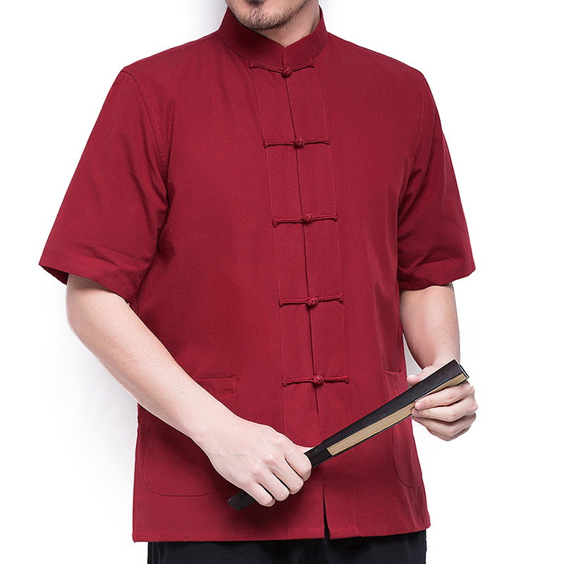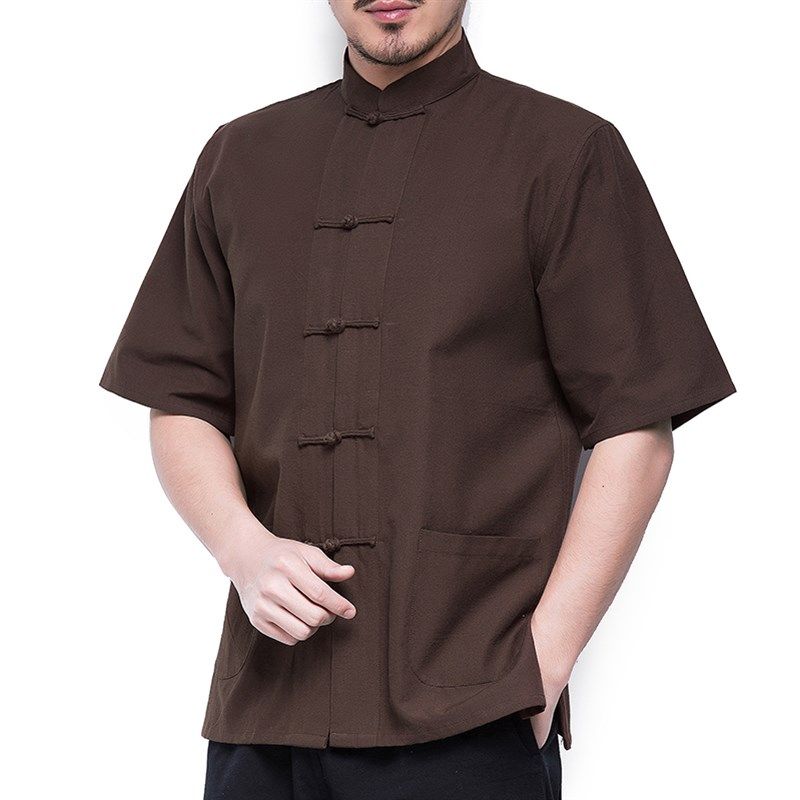 中国风纯棉老粗布男唐装男装短袖中式夏季中老年衬衣打底衫居士服