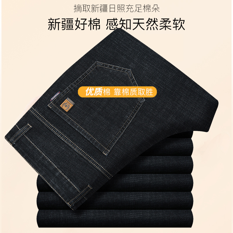 虎都高档男裤冬季厚款中年牛仔商务休闲直筒宽松高腰免烫弹力男裤