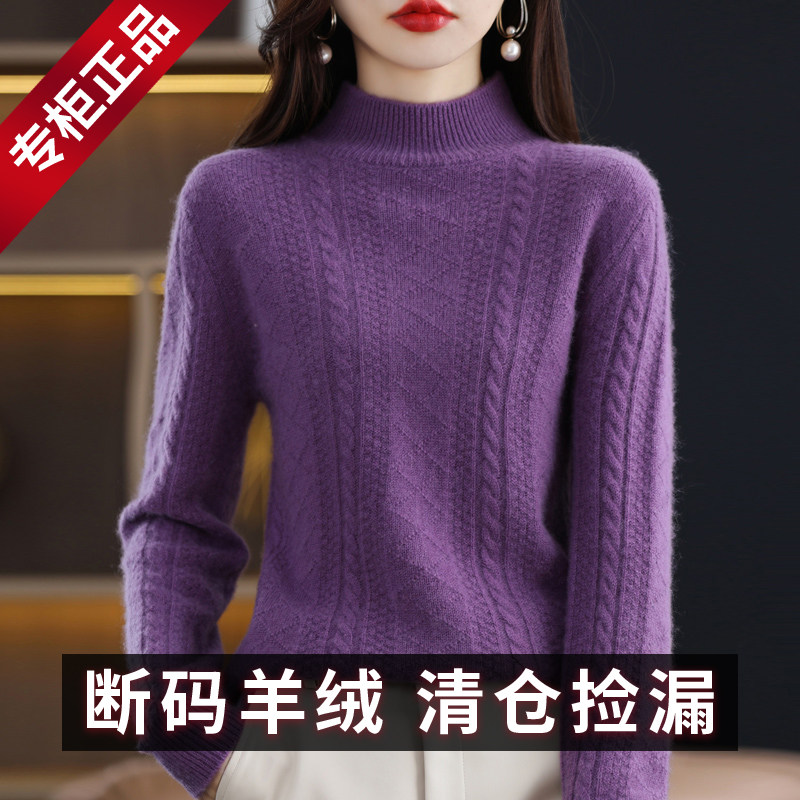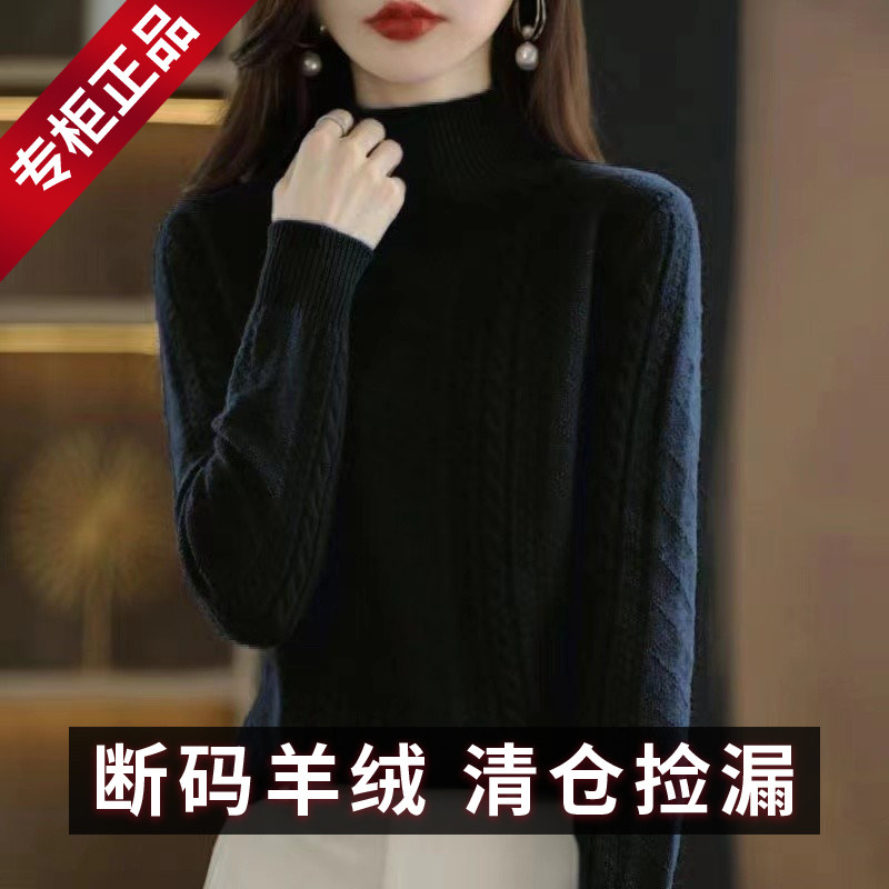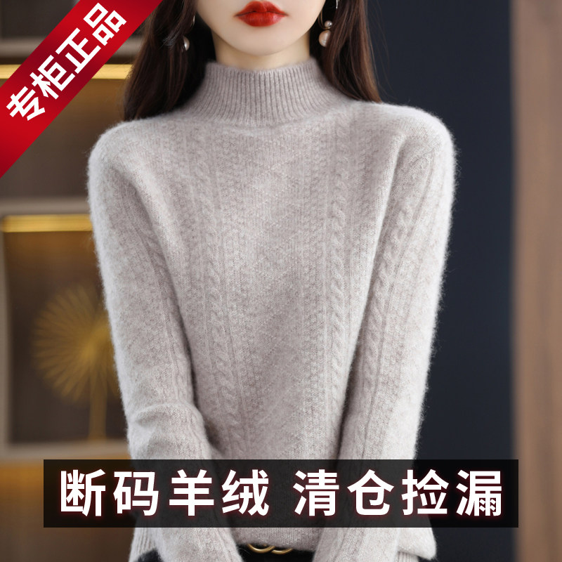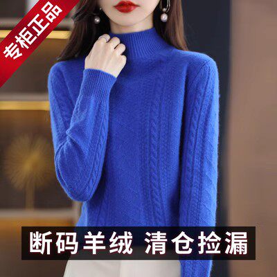 鄂尔多斯市羊绒衫女士秋冬加厚半高领宽松套头毛衣针织打底羊毛衫