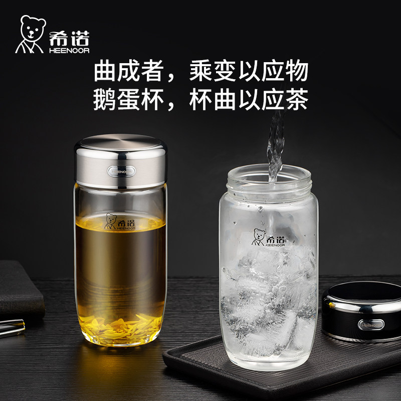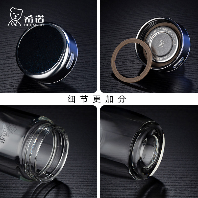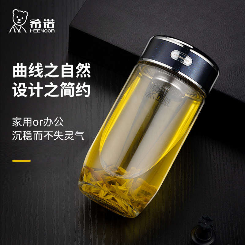 希诺玻璃杯单层加厚大容量杯子男女士商务泡茶杯办公室便携水杯